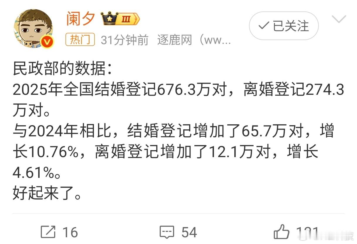 结婚是好事,成家持业万事向前,这点是支持的~2025年全国结婚登记676.3万对