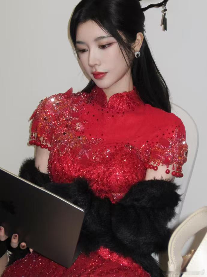 戴燕妮红色闪钻旗袍 哇哦,戴燕妮的红色闪钻旗袍太赞啦!正红色衬得她明艳照人,闪钻在灯光下闪耀夺目,复古又迷人,美出新高度!