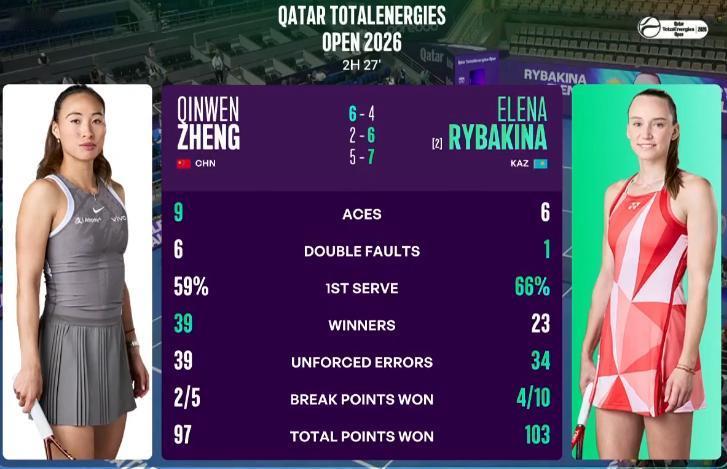 郑钦文很不错,与新科澳网冠军打得难解难分。 昨天郑钦文与莱巴金娜的比赛可能太晚了,很多人没有看,大家看到最终结果是郑钦文1-2告负,可能觉得没有什么好说的,其实,郑钦文这场比赛的表现很亮眼。 她第一盘6-4获胜,第二盘2-6输了,第三盘2-5落后,然后连拿3局,追至5平。 在莱巴金娜拿下发球局后,郑钦文在自己的发球局,40-0领先,眼看要用一个love game进入抢七了,双方胜负难料。 但最后突然连丢5分,5-7输掉了决胜局。 整场比赛,郑钦文有两个关键指标领先。一是ACE球,郑钦文9-6领先;二是制胜分,39-23大幅领先。要知道,莱巴金娜是新科澳网冠军,决赛前一盘未失啊,这说明郑钦文的攻击力是世界领先的,未来仍有无限可能。