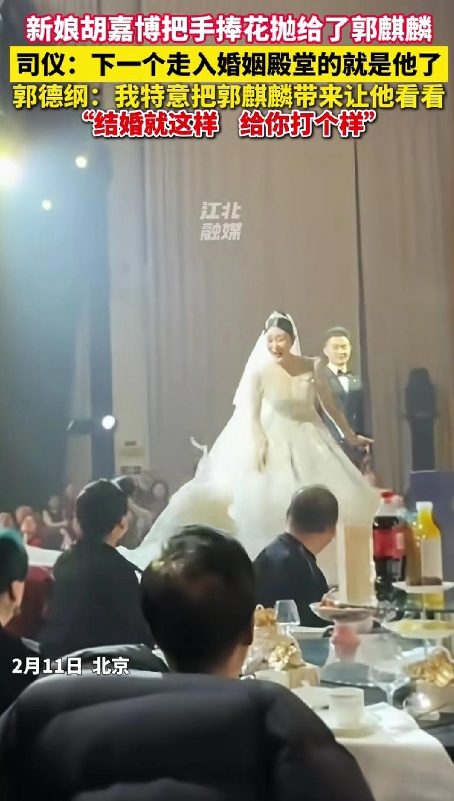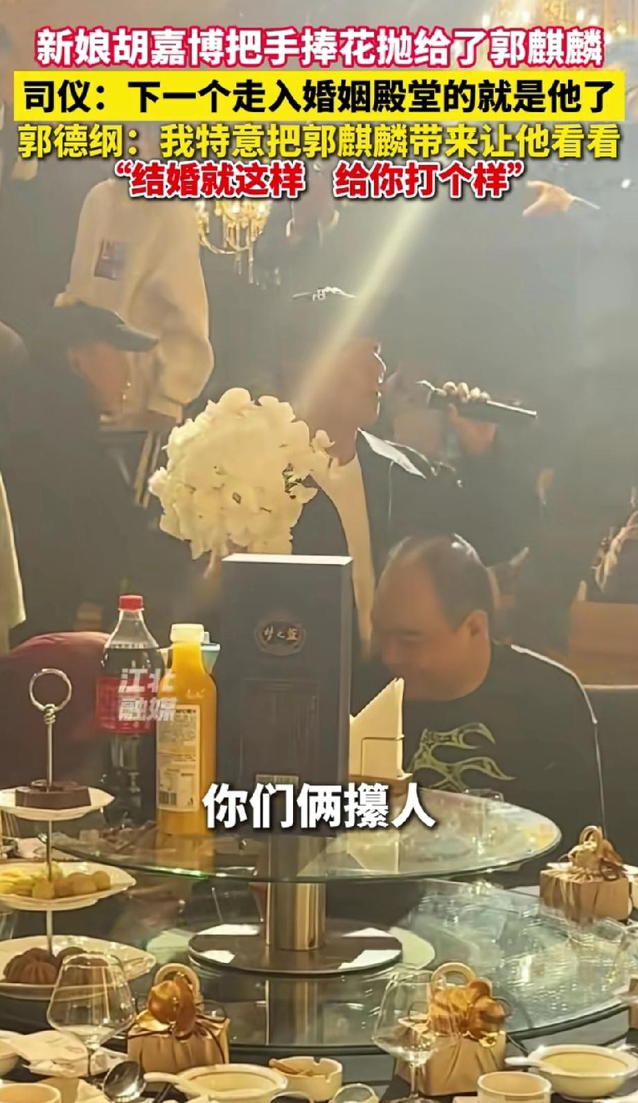 还是说相声的幽默! 原来郭德纲是这样催婚的。 2月11日,郭德纲徒弟结婚,新娘直接把手捧花抛到郭麒麟的怀里。这时,司仪赶忙说:“哎呀!真没有想到手捧花居然抛到了郭麒麟的怀里,那么下一个要走入婚姻殿堂的就是我们的郭麒麟。发表点获奖感言吧。” 直到这时郭麒麟才明白,原来大家配合的如此之好,都是之前商量好的,难怪他爸非要带他来参加婚礼。 郭麒麟拿起话筒来了一句:“你们俩攥人, 我告诉你们,谢谢,谢谢弟弟,谢谢弟妹。” 郭德纲还强调:“我特意把他带来看看,结婚就是这样的。”转头对着郭麒麟说:“给你打个样啊。” 原来郭麒麟也免不了被催婚的烦恼。看来天下父母都一样。 随着时代的发展,被催婚的形式、花样也是越来越多。你们都见过哪些与众不同的催婚现场? 郭德纲 郭麒麟 相声 郭德纲人生感悟 郭德纲名言名句