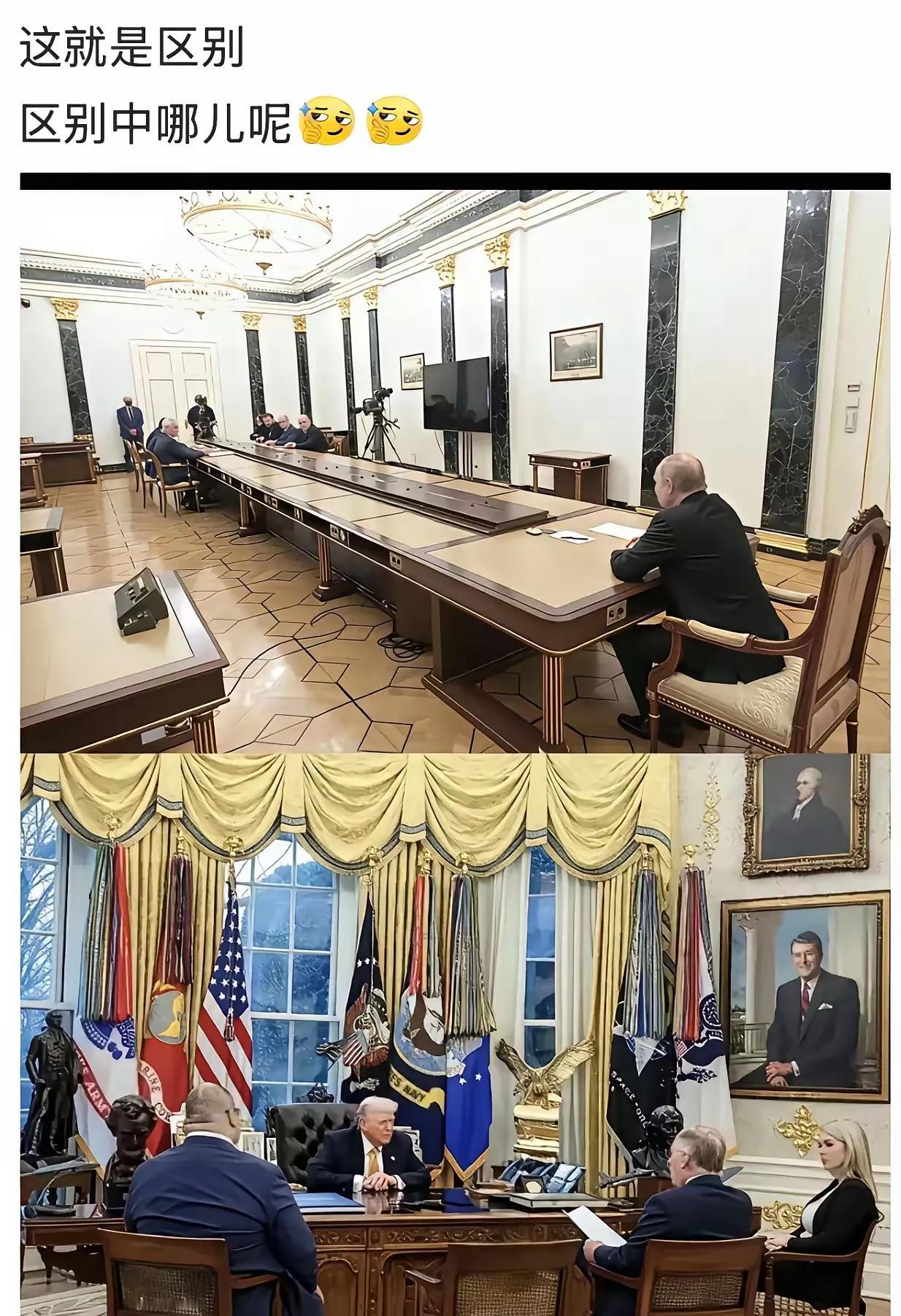 普京开会那叫一个霸气,霸气十足,不愧是俄罗斯杰出的领导者。川普开会的场景与普京开会的场景,区别太大了,一个霸气十足,尽显帝王风范,一个太随便了,毫无王者气质。两者相比,一个天上一个地下,云泥之别,根本不在同一个层面。
