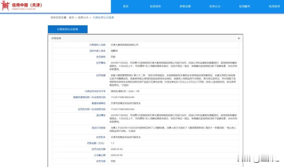 震惊!天津一宠物医院给狗免费打了一针,倒赔1.3万!原因竟是……网友:医闹的风终究是吹到了兽医界! 天津,主人带着人用胰岛素携患有糖尿病的狗狗就医,双方协商一致后,医生就用狗狗主人带来的人用胰岛素,免费帮忙给狗狗打了一针。 结果—— 被人举报了! 农业农村委:人药兽用,违法! 罚!1.3万! 医院懵了:没收钱啊,还帮了忙啊? 法规不看不知道:《兽药管理条例》明文写着——⚠️禁止将人用药品用于动物!违规就罚1万到5万! 一针“好心针”,打出1.3万罚单! 这针胰岛素,成了今年最贵的一针💉 网友吵翻了: “医闹的风终究是吹到了兽医界!” “免费帮忙还挨罚?” “谁告发的?还是钓鱼了?真是有出息啊!” “规矩就是规矩,人药用在动物身上,出了事谁兜底?” “不是钱的事,是怕产生耐药性,最后人畜无药可用!” “宠物主人非法提供药物,也应当处罚!” 这张罚单,让人看了心里不由得一阵唏嘘,好心帮忙反被罚,只是这天知地知你知我知的事,究竟是谁告发的? 这事很耐人寻味!不同寻常!总有些阴谋的味道! 但按照规定,医院的操作确实不妥,不要好心帮忙,不要免费使用对方提供的药物。自己的医院能治就收费治疗,不能治就明确告知。 病宠不懂,病宠的主人也可以不懂,但作为医生,要懂行业操作的规定和界限。 即便,这是一个坑,既然跳进去了,就只能认罚! 你觉得这1.3万,该罚吗? 素材来源:天津日报、大象新闻,侵联删