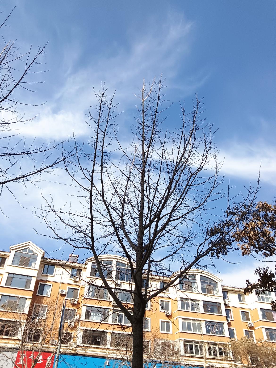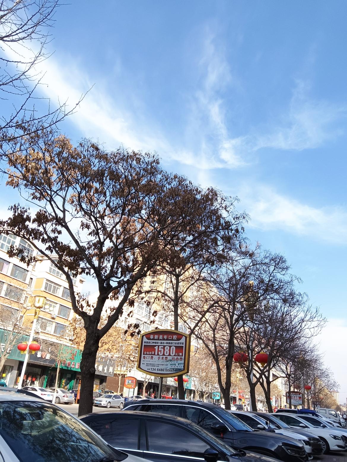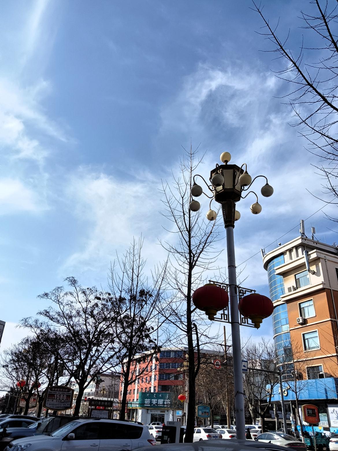 冬日暖阳下的城市街景,车水马龙,繁华落尽。