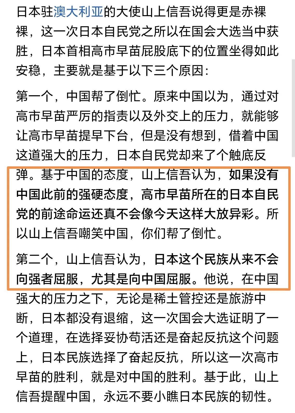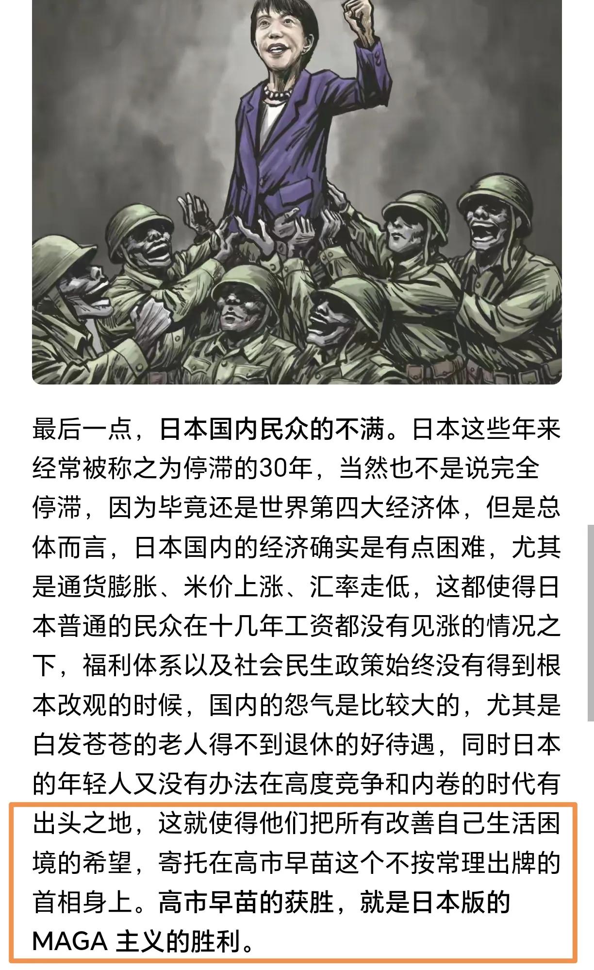 日本绝大多数民众还是支持高市早苗的政策,把国家强盛的希望寄托在右翼路线乃至军国主义上,又打算赌一次国运了。 日本人认为失败了大不了就鞠躬道歉、换个领导人、再退回本土而已;而中国人民一向宽容大度、善良得像傻子一样,肯定会原谅日本人的侵略行为、不会进攻日本本土的。这不是虚构的,而是日本大多数人的真实想法,因为历史上这样的例子也不止一次了。 看看日本政坛在高市早苗大选胜利后的小人得志言论,和他们鼓吹要实行的修宪、扩军、篡史三大路线,和正在做的拜鬼、对中俄态度强硬。就知道未来对日本战争是不可避免的,开战时间在于日本觉得自己何时准备好了就偷袭中国,因为日本人知道中国是永远不会开第一枪的。 日本国会大选自民党大胜意味着什么高市早苗内阁 高日早苗