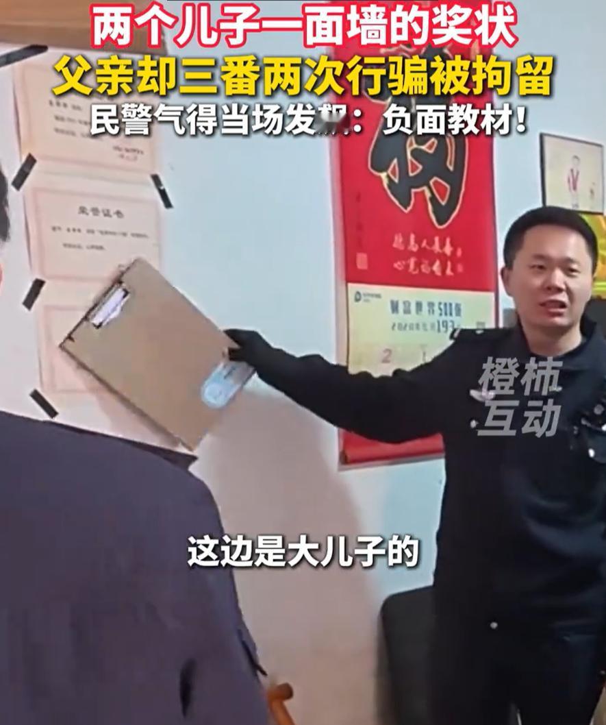 “你就这么做榜样的?”安徽六安,一男子多次坑蒙拐骗被抓,可警方来到男子家中时,却发现满墙贴满了两个儿子的奖状,民警气得当场发飙:你是什么样子?负面教材!网友:孩子输给了一个不争气的爹 男子所住的屋子里面能看到没有特别多的家具,但却贴满了孩子的奖状,左边都是大儿子的奖状,右边都是小儿子的,一个个都整齐地挂着,仿佛在提醒着大家,这个男人有孩子,有家庭,还培养出这么优秀的儿子。可是,当民警看到这些奖状,心里的火一下子就冒了出来 “你看看你儿子的一墙奖状,你又是个什么样子?”民警气得当场就训斥了起来,“你能给你儿子做个好榜样吗?你做的榜样可不是什么正面的榜样,简直是负面教材!” 这番话虽然直接,但也说到了点子上。这个男人看着墙上那些奖状,心里也有些触动,低声说了一句:“确实对不起良心。”这一幕让人心里五味杂陈 有些人可能会觉得这个男人身上没啥好说的,毕竟做坏事就是做坏事,但从另一方面来看,这也是个警示 父母再怎么努力给孩子创造条件,但如果父母自己没有做好榜样,孩子的成长和心理发展也会受影响 这个案件不仅是对违法行为的警示,也是对父母责任的提醒。你可以不完美,但你不能在孩子面前做出坏的示范。毕竟,父母是孩子的第一任老师,什么样的父母,孩子就可能变成什么样的人