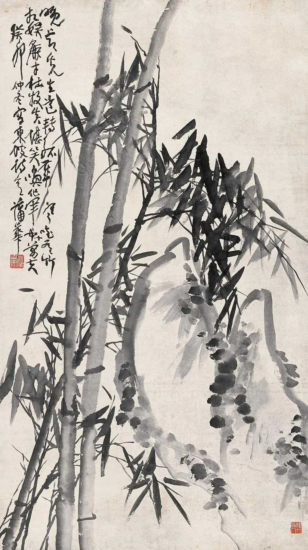 清末 蒲华 墨竹图。蒲华(1832—1911)字作英,亦作竹英、竹云,浙江嘉兴人。号胥山野史、胥山外史、种竹道人,斋名九琴十砚斋、九琴十研楼、芙蓉庵,夫蓉盦、剑胆琴心室等。晚清著名书画家,与虚谷、吴昌硕、任伯年合称“海派四杰”。