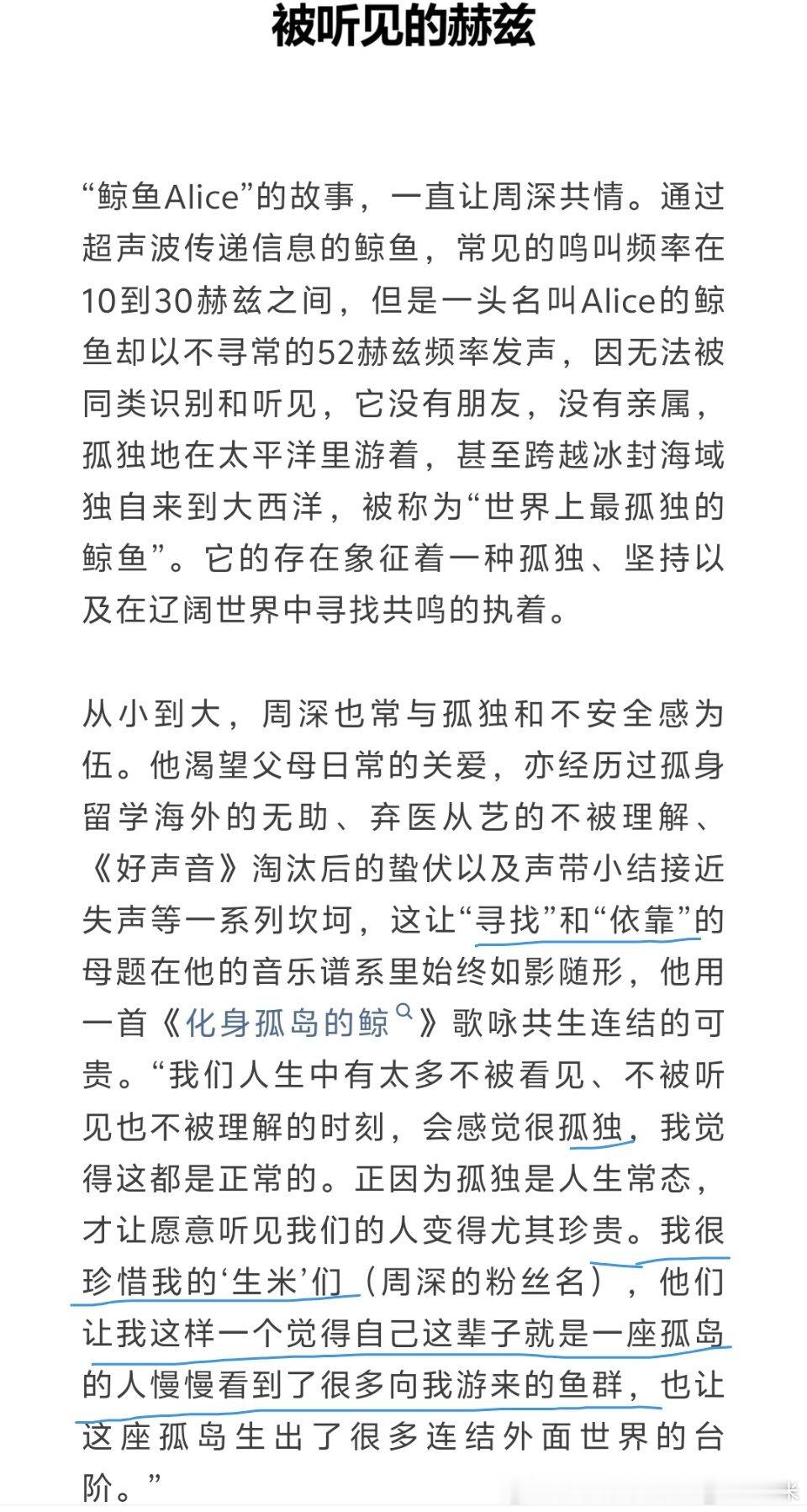 周深周深说我很珍惜我的生米们周深说演唱会舞台让他安全感拉满周深杂志 只能说与你相遇很荣幸!很幸运能在你寻找同频的声波时与你相遇!爱上和依赖上你的声音和你的出现,让我非常非常非常幸福!的确有一万个理由可以说不见面,但只有一个理由就是我想见你!(不顾耳返里导演的催促,依然忍不住想跟台下多聊两句)领导你2026希望我们依然继续同频下去