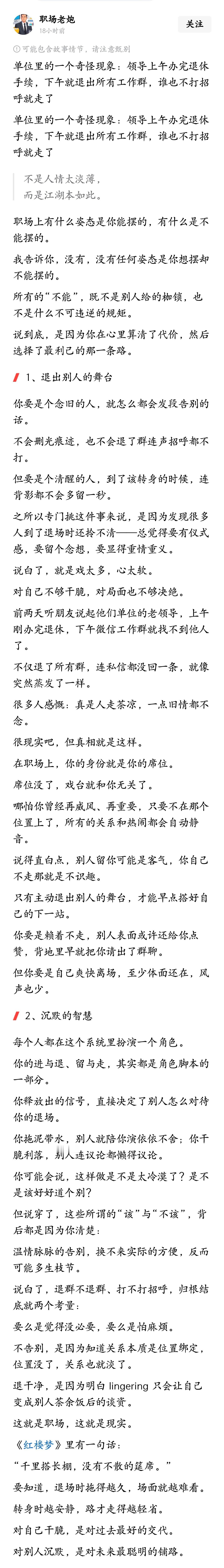 单位里的一个奇怪现象:领导上午办完退休手续,下午就退出所有工作群,谁也不打招呼就走了