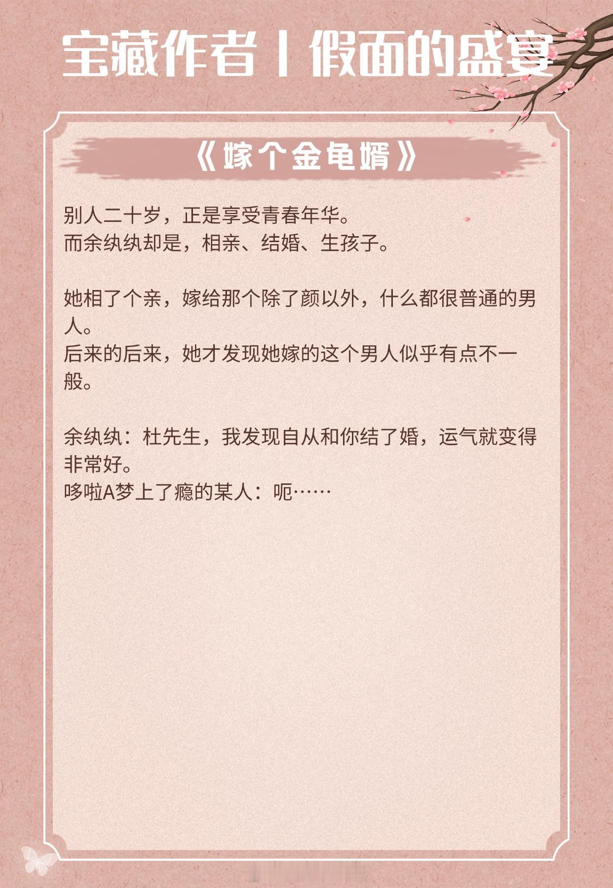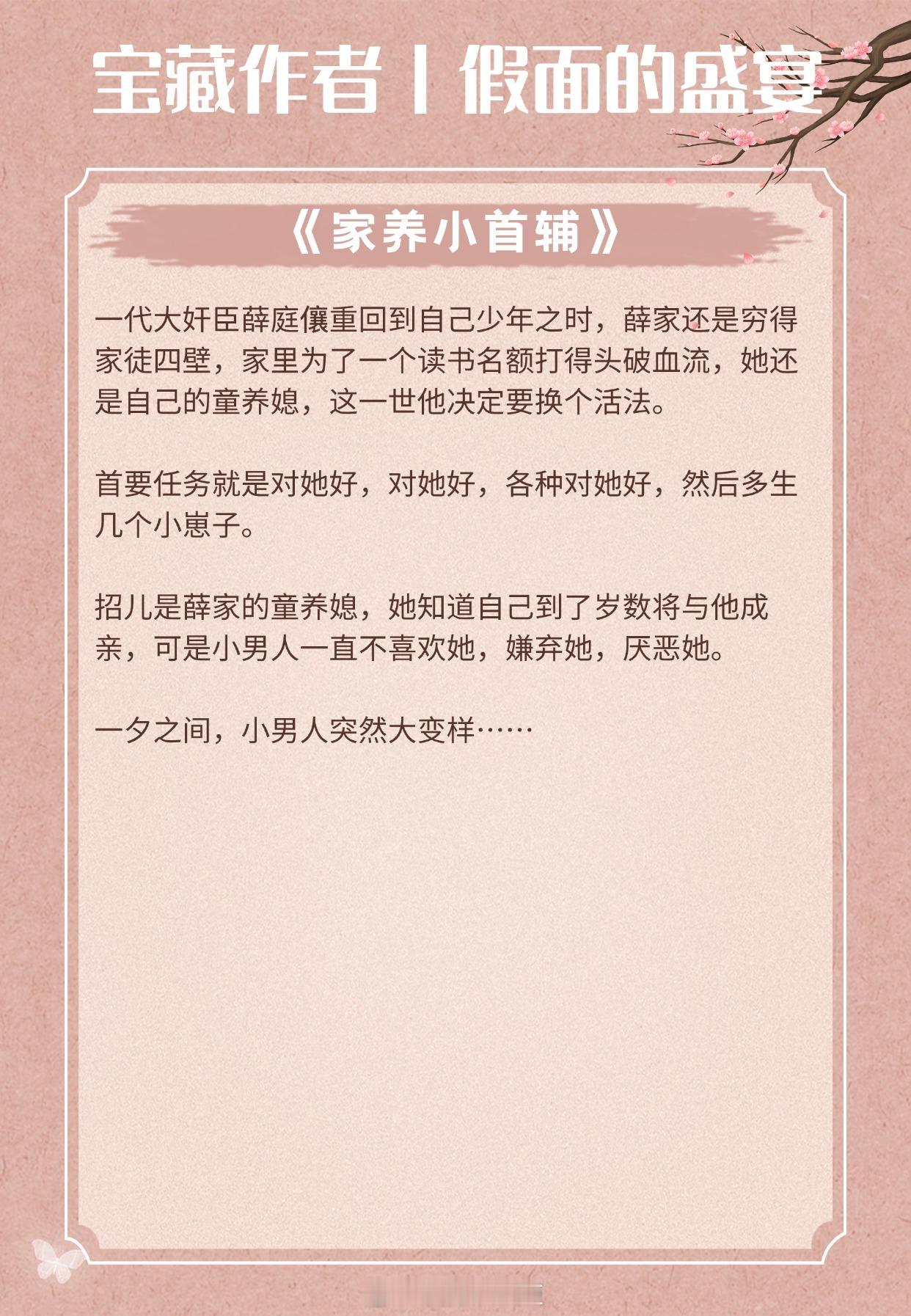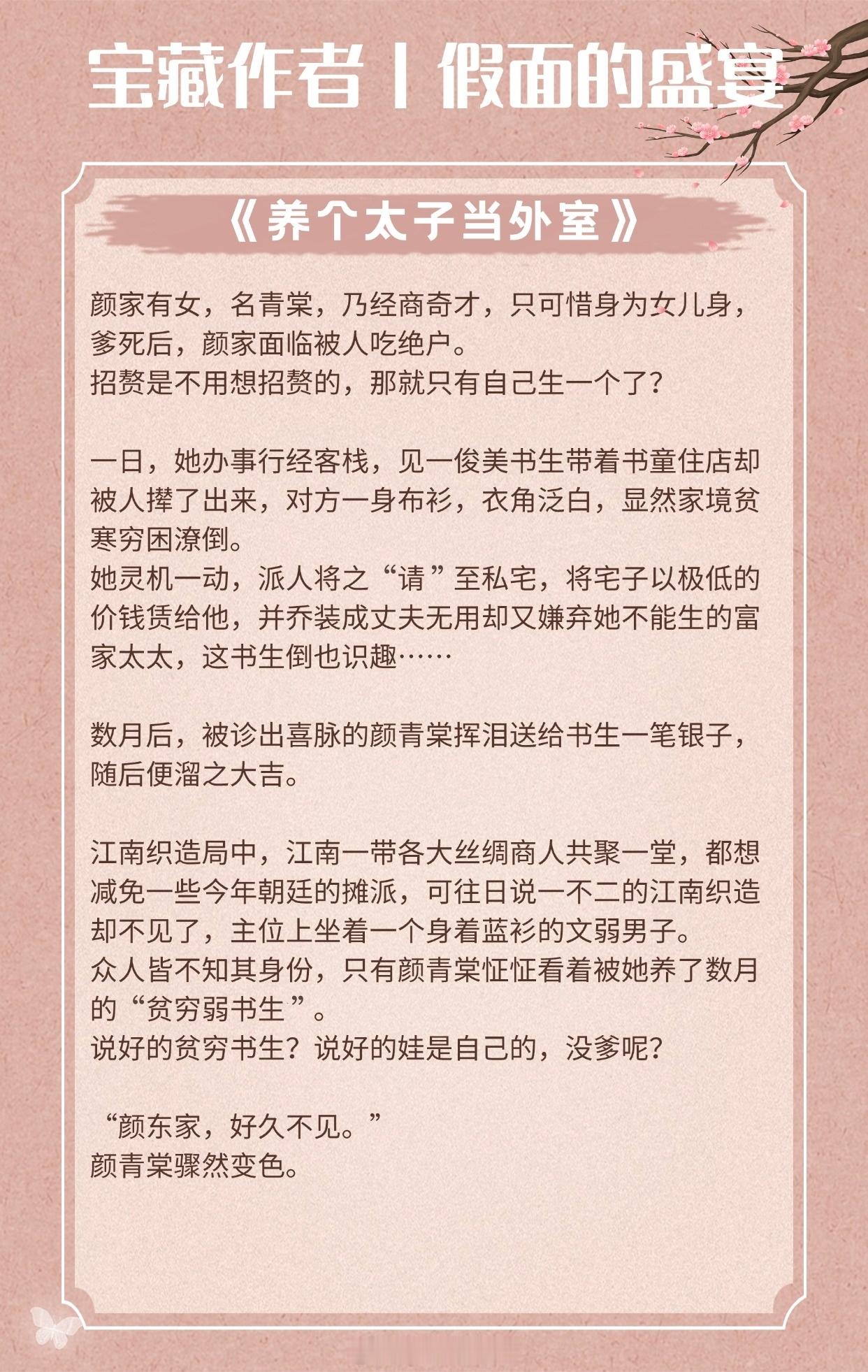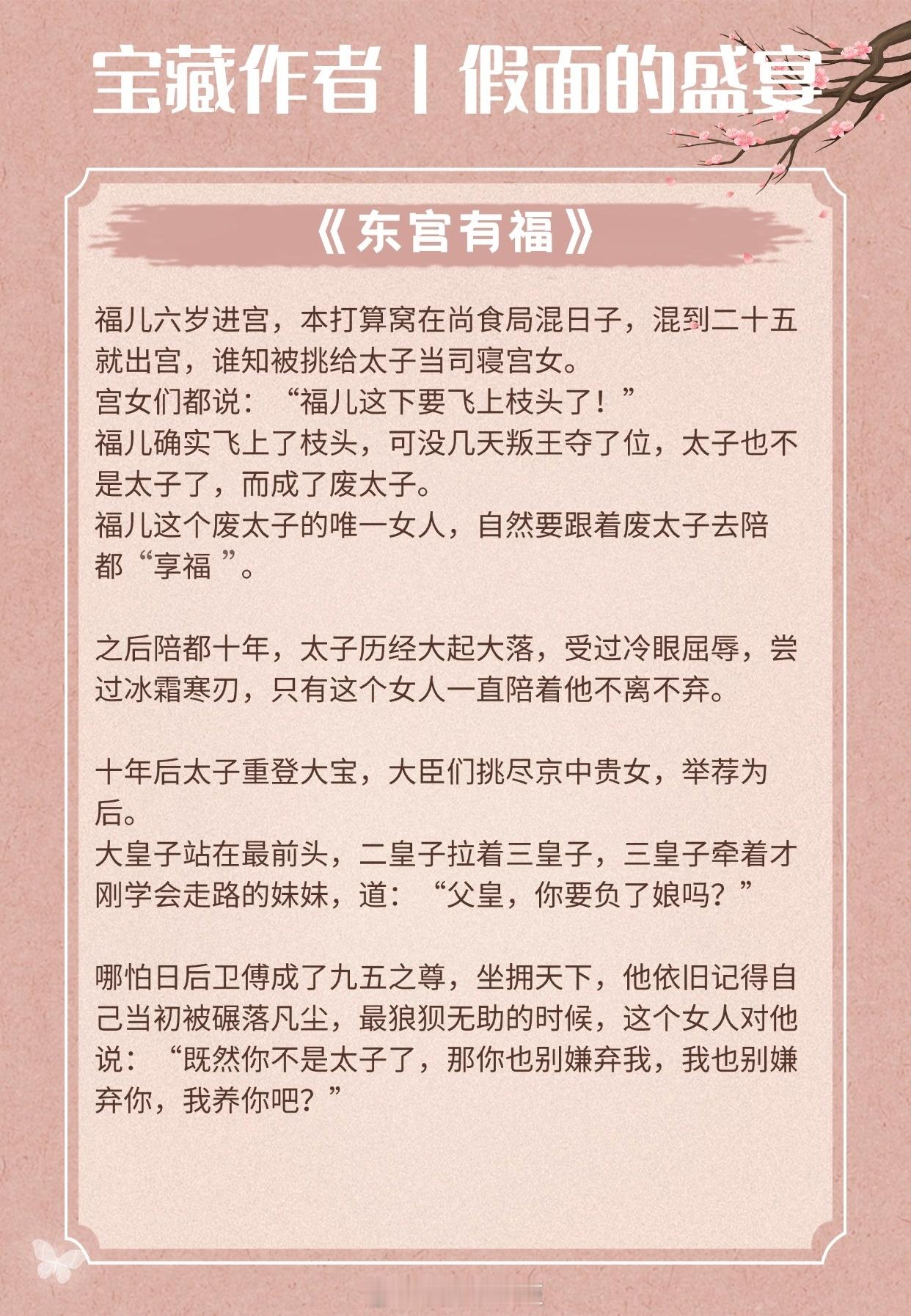 【宝藏作者:假面的盛宴】擅长写古言小甜饼,文笔老练,虐渣利落!