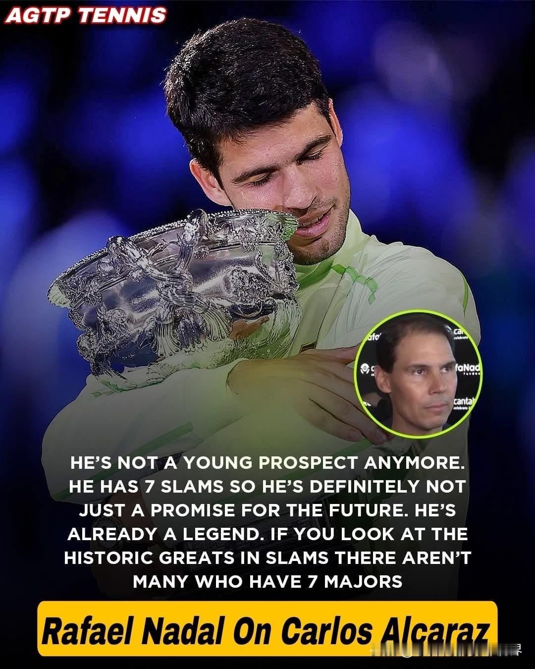 纳达尔盛赞阿尔卡拉斯已是网坛传奇! 纳达尔近日公开表示:“他不再是年轻的未来之星了,他已经拥有7个大满贯冠军,所以他绝对不仅仅是未来的希望,他已经是传奇了。如果你看看大满贯历史上的伟大球员,你会发现拥有7个大满贯冠军的并不多。” 大家同意纳达尔的话吗?阿尔卡拉斯目前的成就已经被称得上传奇了吗?