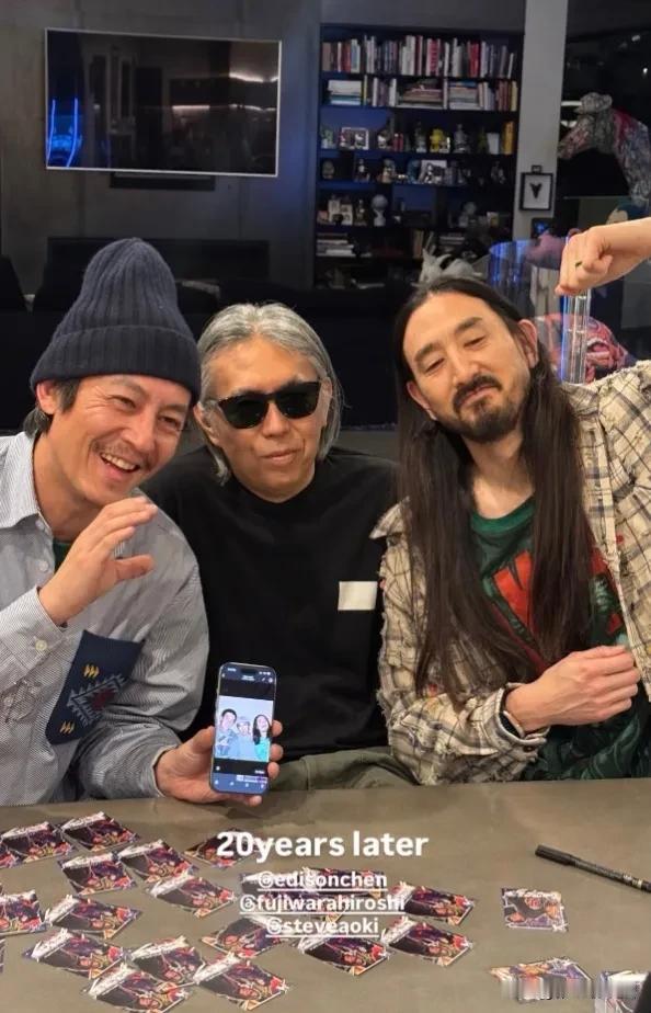 陈冠希与腾原浩、潮爷20年后合照今昔对比,有些网友开玩笑说是赵本山,王传君,陈可辛。有那么点意思。玩笑归玩笑,个人还是很喜欢他们的友情可以长达那么多年没有变化,关系一直很好。