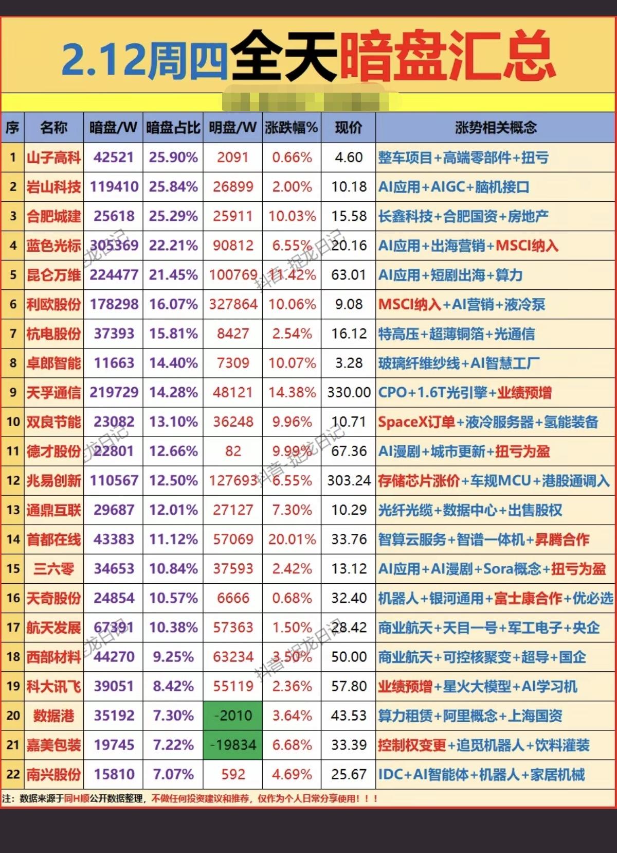 2.12周四 暗盘资金 主力抢筹个股榜! 暗盘资金抢筹,数据整理: 算力+AI应用,特高压、机器人、光纤光缆、储能,液冷,金属钨、AI智能体