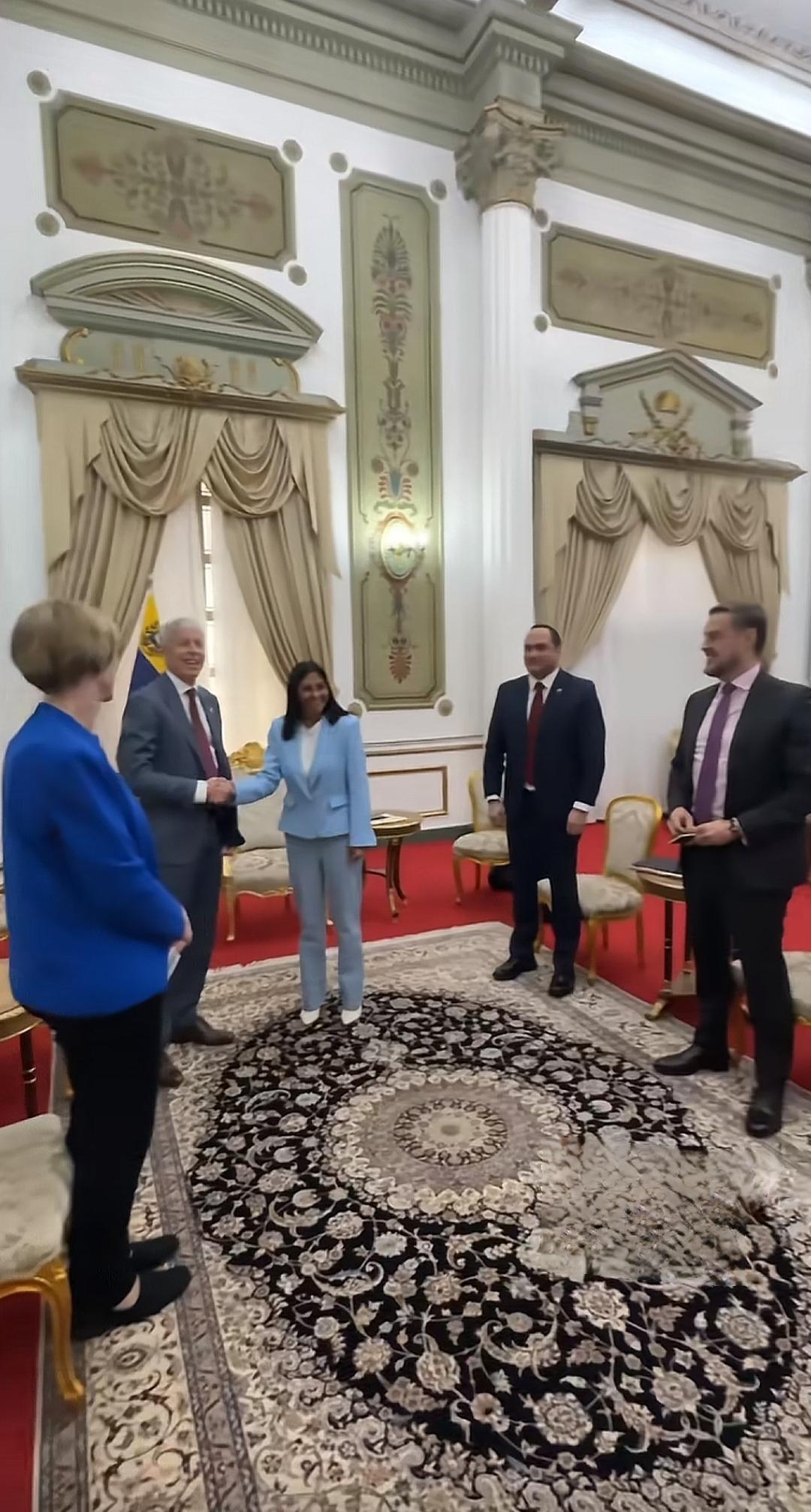 擒一王而和平演变其国,特朗普开创委内瑞拉范例。没有伤亡损毁,只有和平进步,此范可式。 1月15日,中情局局长飞抵加拉加斯,这离美军在此抓走马杜罗还不到半个月呢,谁不服其胆大包天?毅然虎穴一行,架通了两国情治密线。 1月31日,美国驻委内瑞拉临时代办(大使)抵达加拉加斯,恢复了被马杜罗斩断七年的两国外交关系。 2月11日,美国能源部长抵达加拉加斯。治国要抓纲,解决问题要找到主要矛盾,石油能源是委内瑞拉问题的总枢纽。 马杜罗被抓后,临时总统罗德里格斯率领残余政权全力配合美方的管制,言听计从,仿佛特朗普的内阁,委国的权力过渡(和平演变)进行得很顺利。特朗普对她表示满意。马杜罗之子小马杜罗表现也很不错,公开表态称执政党已做好做反对党(在野党,即下台)的准备。 抓王变政,虽可范式,但王不好抓呀!比如伊朗,大小王们藏得太严实了,美以如若寻求变其政,可能最终不得不大开火,摧毁其整个权力架构。 【图为罗德里格斯接见美国能源部长】