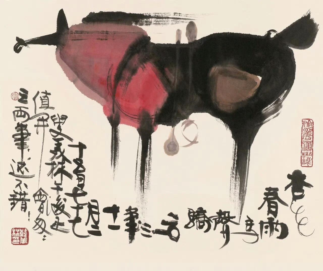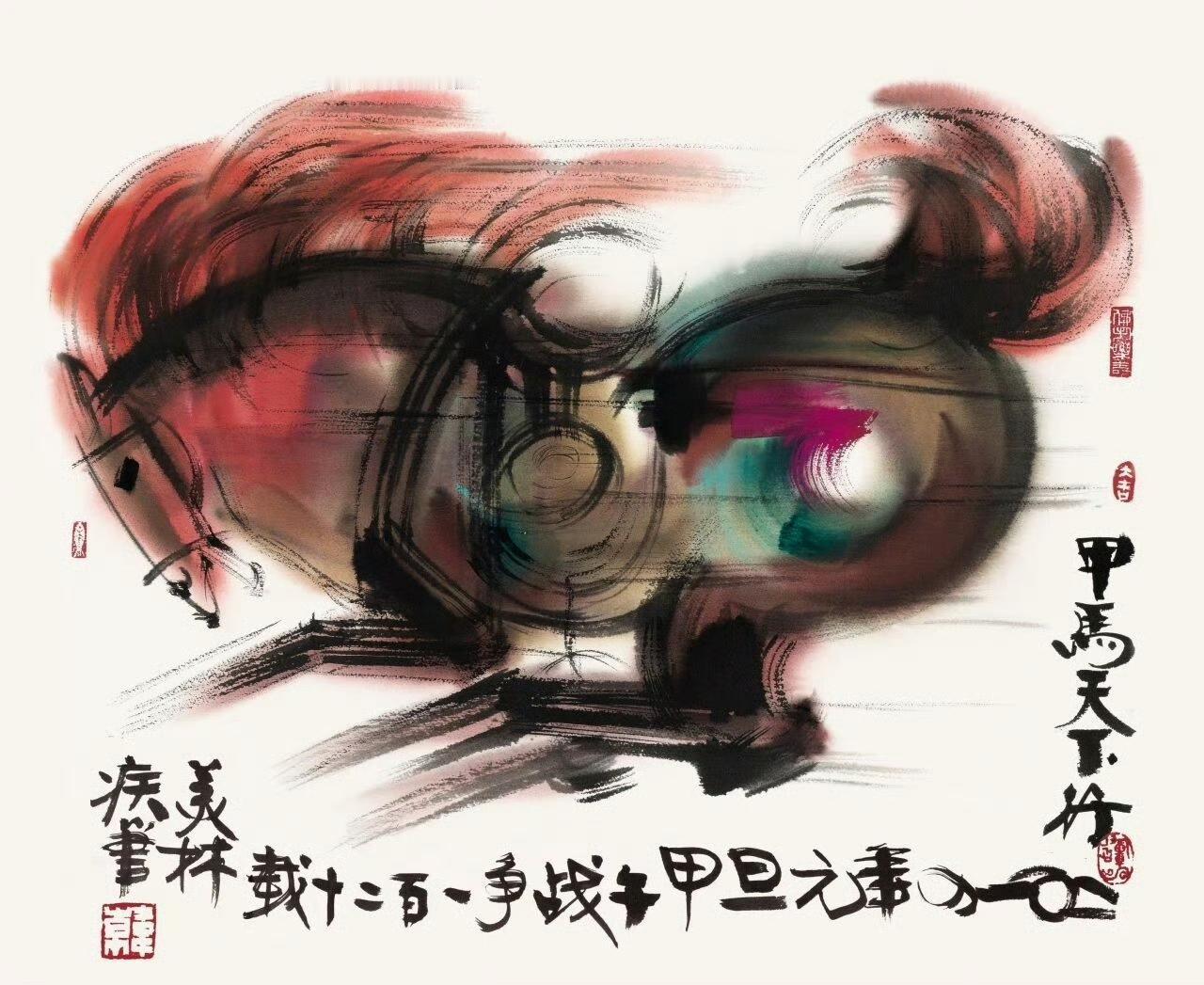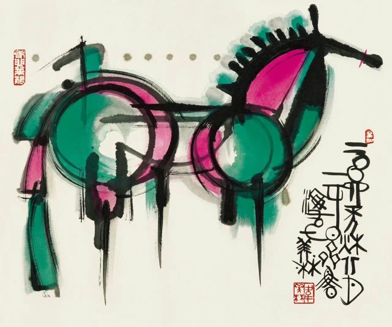 韩美林:让笔墨在天地间撒野 韩美林的画,像挣脱了缰绳的风——“神行于野”是他的筋骨,“意骋于新”是他的魂魄。 他画动物,不圈在画框里。老虎的斑斓不用浓墨重彩,几笔飞白扫出皮毛的劲,眼睛却用艳色一点,像藏着星子;熊猫的憨,不在圆滚滚的身子,在那歪头啃竹的俏皮,墨色浓淡间,透着山野的灵气。 他写书法,不困在格子里。笔锋时而如刀劈斧凿,刚劲得能刻进石头;时而如流水绕山,柔婉得能缠上枝头,字里行间全是“野”性,却野得有章法,乱中藏着天地的秩序。 “新”是他的翅膀。把传统的花鸟虫鱼,揉进现代的线条里;让民间的剪纸纹样,长出灵动的姿态。他的画里,能看见老手艺的温,也能摸到新时代的风,像给笔墨按了弹簧,一蹦就跳出了新花样。 神在旷野里跑,意在新意里飞——韩美林的世界,笔墨从不是束缚,是撒野的舞台,每一笔都在说:艺术,就该这么活!
