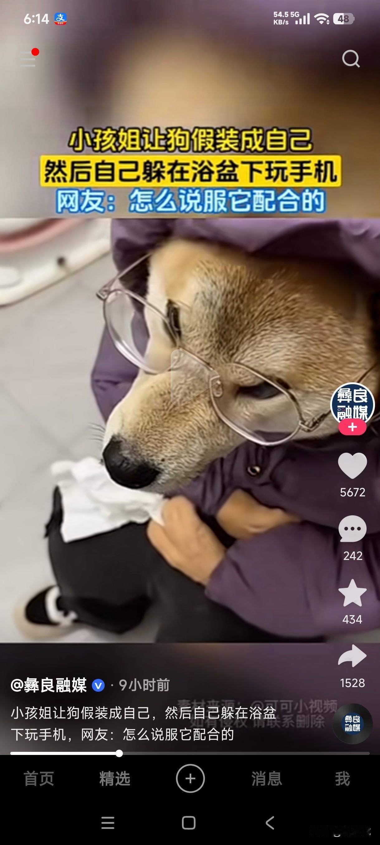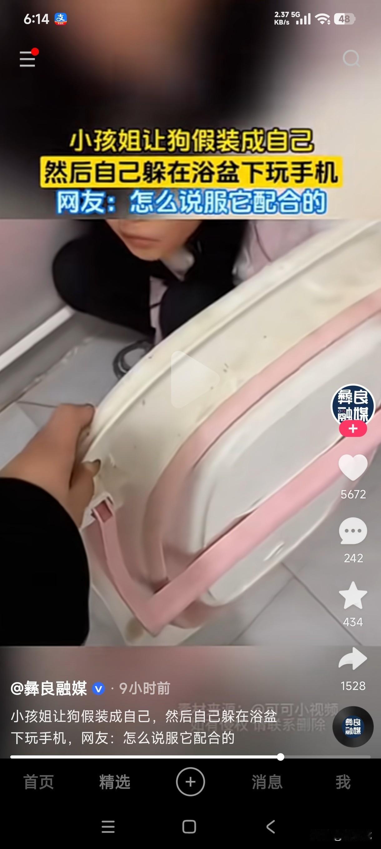 小孩姐为了玩手机让狗子穿上自己的衣服和鞋子,还给狗子带上自己的眼镜假装她坐在马桶上上厕所,自己却躲在浴盆下面玩手机,她是如何做到让狗子配合她的? 如果不仔细看谁能看出来马桶上坐的是狗,不管是从体形还是着装来看,这活脱脱的就是人,但大人把帽子掀开一看,谁能想到这是狗子,而且还给狗子带着眼镜,然而这孩子居然把自己扣在浴盆下面偷偷玩手机,这鬼点子要是用在学习上多好,但她却用在了玩手机上。 大人把这一幕发到了网上,网友们也惊讶这小孩姐到底是如何做到让狗子配合她的,一个敢想办法,一个唯命是从的静静配合,这究竟是咋做到的?