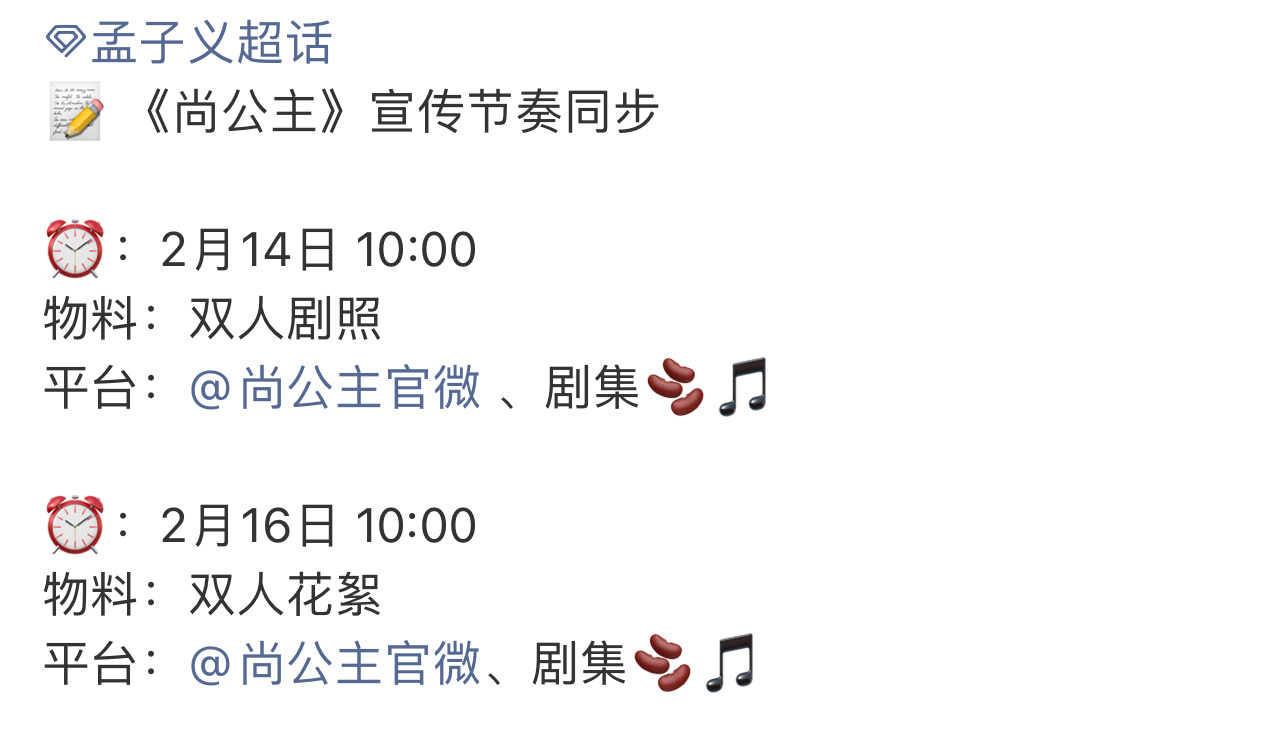 尚公主情人节宣传节奏孟子义李昀锐《尚公主》情人节宣传节奏,太幸福了吧等一个双