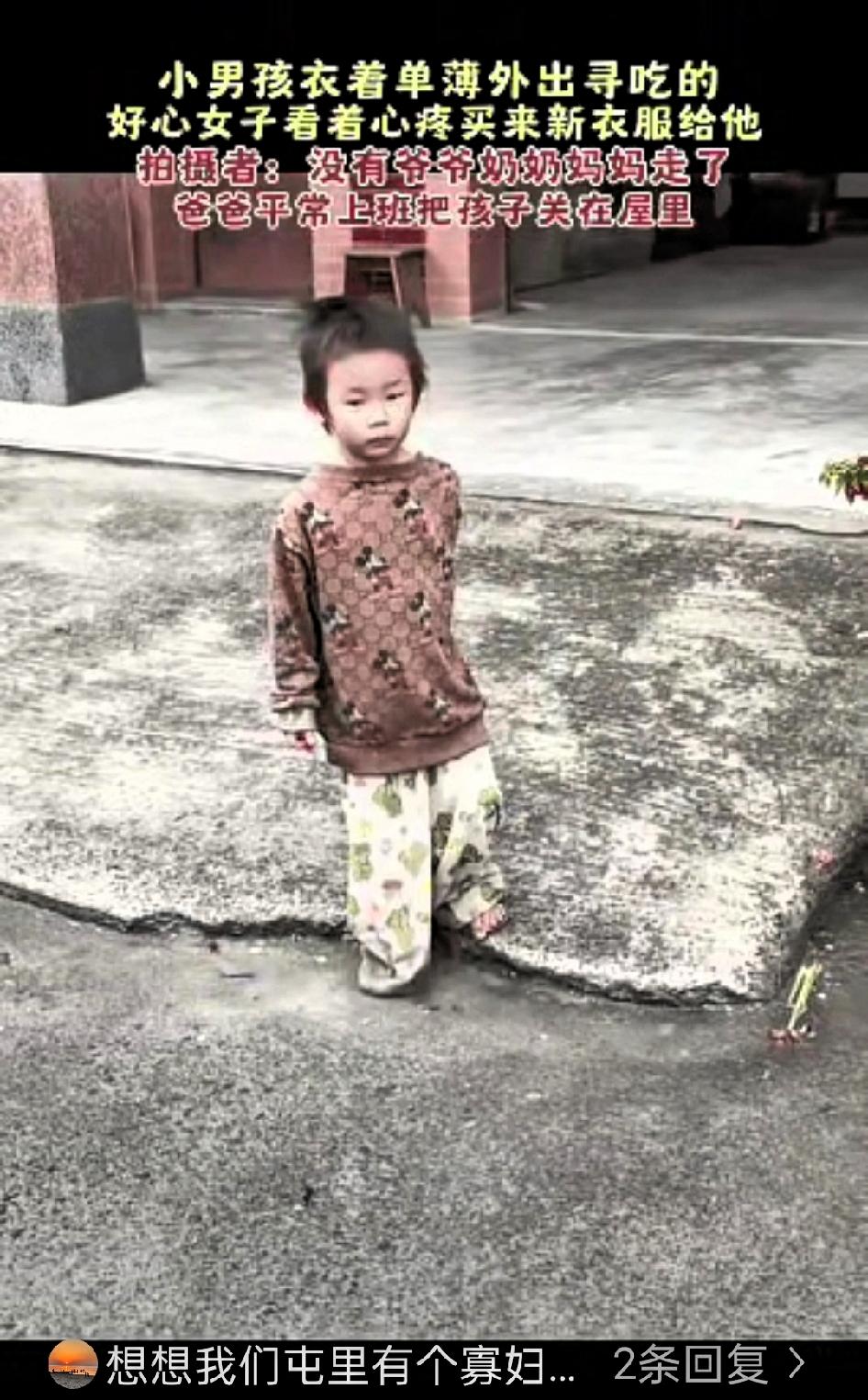 泪目了!浙江某地,一女子开车外出,在一个村里,一个几岁的小男孩独自走着,光着的小脚丫踩在冰凉的地面上,身上的衣服又脏又不合身,裤子拖沓着,小脸蜡黄,眼神里满是怯生生的警惕,全然没有同龄孩子的活泼。 向旁边的村民打听后,才了解了孩子的处境。他的爷爷奶奶早已去世,妈妈离家出走后再无音讯,家里只剩他和爸爸相依为命。 爸爸为了养家,白天必须外出打工,没有精力时刻照看孩子,出门时只能把他锁在出租屋里,有时忙起来,连足够的食物都来不及留下。孩子饿了,就只能偷偷跑出来,小心翼翼地向路人讨点吃的、喝的,勉强维持。 路过的女子听完这些,眼眶瞬间红了,没有过多的言语,转身就开车去了附近的商店。她给孩子挑了合身的棉衣和鞋子,蹲在路边耐心地帮他换上,又带着孩子去路边的饭馆,点了简单的饭菜,看着孩子安安静静吃饭的样子,女子轻轻叹了口气。临走前,她把买来的零食递给孩子,反复叮嘱他注意保暖。 这位女子的善举,没有轰轰烈烈,却格外动人。她用力所能及的行动,给了孩子片刻的温暖与关怀。孩子的爸爸或许有生活的难处,但监护孩子的责任,终究不能被忙碌完全抵消。成长只有一次,孩子需要的不仅是果腹的食物,还有最基本的照料与陪伴。 陌生人的善意,就像冬日里的一缕微光,虽微弱却能照亮孩子当下的困境。也希望这份温暖能提醒身边人,多留意那些需要帮助的小生命,哪怕只是一句问候、一点援手,都能给他们带来力量。