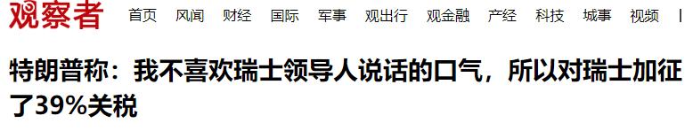 刚刚刷到特朗普的新闻,差点把刚喝进去的茶喷出来。 2月11日,老特突然宣布要把对瑞士的关税从30%直接干到39%。 就在2月10号,特朗普接受美国福克斯商业频道采访时,自己亲口透露了加征关税的原因,说本来他只打算对瑞士加征30%的关税,结果接到了瑞士时任联邦主席凯勒-祖特尔的电话,就因为不喜欢对方说话的口气,当场就把关税涨到了39%。 老特在采访里还闹了个小乌龙,把凯勒-祖特尔说成了“瑞士总理”,要知道瑞士根本就没有总理这个职位,凯勒-祖特尔其实是瑞士联邦委员会的委员,2025年轮任过联邦主席,现在还担任着瑞士财政部长。 他回忆说,当时对方在电话里反复强调“瑞士是个小国,承担不起这么高的关税”,语气虽然友好但很强硬,甚至让他没办法插话,越听越不爽,索性就直接加码关税,一点不带犹豫的。 其实瑞士一直对美国很让步,从2024年1月开始,瑞士就对所有工业产品实施零关税,允许99%的美国商品免税进入本国市场,可即便这样,特朗普还是觉得美国“吃亏了”,理由是美国对瑞士有巨额贸易逆差。 老特在采访里说,双方的贸易逆差达到了420亿美元,瑞士就是靠着低关税“占美国的便宜”,可瑞士方面早就反驳过,要是算上美国互联网企业在瑞士的收益,还有服务贸易顺差,实际逆差根本没这么多,而且2025年上半年逆差暴涨,主要是因为美国企业担心黄金关税上涨,疯狂从瑞士进口黄金导致的,跟瑞士本身没多大关系。 最让瑞士憋屈的是,之前双方其实谈好过关税下调的事。去年7月,美瑞两国经过谈判,已经达成协议,要把关税从31%降到10%,瑞士方面本来都满怀信心,结果就在瑞士国庆节前一天,凯勒-祖特尔和特朗普通话谈崩了,不仅没降到10%,反而被涨到了39%,这个税率也是特朗普政府针对西方盟友开出的最高税率。 之后瑞士还专门派了领导人带着修改后的协议飞赴美国,想当面沟通,结果连特朗普的面都没见着,无功而返,瑞士媒体直接评价这次出行“令人绝望,甚至是耻辱”,不少瑞士民众也觉得,这是小国面对大国专横时的无力感。 这事一出来,不光瑞士炸了锅,美国国内也吵翻了天。有议员批评特朗普,说他把国家贸易当成了“个人意气用事的工具”,凭自己的喜好定关税,根本不顾及美国企业和消费者的利益,毕竟加征关税最后还是会转嫁到美国民众身上,导致进口商品涨价。 也有商界人士担心,这种离谱操作会破坏美国和盟友的关系,影响美国在全球贸易中的公信力,以后其他国家谁还敢放心和美国谈贸易合作。 其实熟悉特朗普的人都知道,这并不是他第一次这么做。翻看他的关税政策就会发现,不管是对加拿大、墨西哥,还是其他盟友,他都经常动辄加征关税,动辄威胁加码,完全不按常理出牌。 之前他还警告过,虽然去年11月美瑞达成协议,把关税降到了15%,但这并不意味着不会再涨,如今他果然说到做到,再次加码,也让全世界看到了他贸易政策的“不确定性”。 说到底,特朗普这种操作之所以让人觉得离谱,核心是因为他打破了最基本的国际贸易规则。本来国家之间的贸易谈判,讲究的是平等互利、理性沟通,可老特却把个人情绪、个人喜好放在第一位,一句话的口气不对,就随便对别的国家加码关税,这种做法不仅伤害了盟友关系,也让全球贸易变得更加混乱。 现在全世界都在盯着这件事,看瑞士接下来会怎么应对,也看特朗普后续还会有什么离谱操作。 毕竟这种凭个人意气用事的贸易政策,从来都不是长久之计,不管是对美国本身,还是对其他国家,最终都只会得不偿失。 天南地北大拜年 冬日生活打卡季