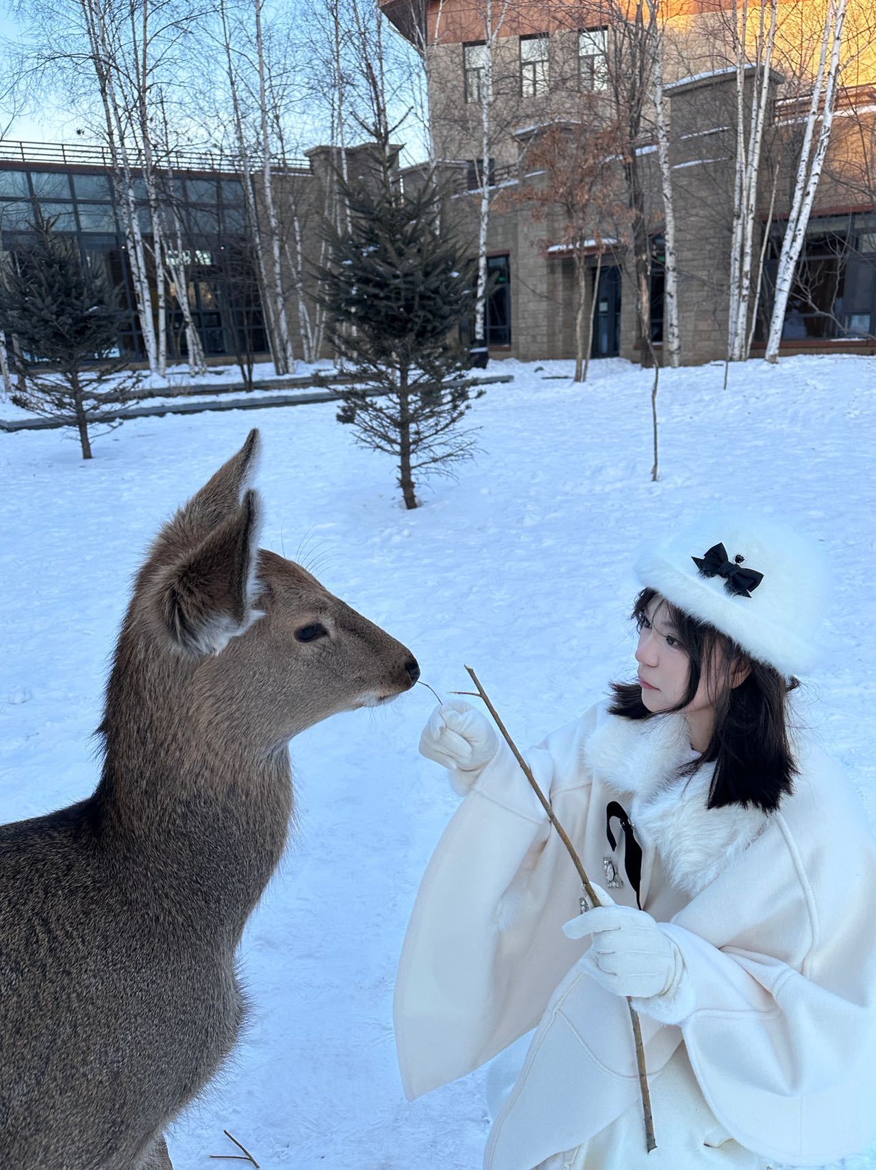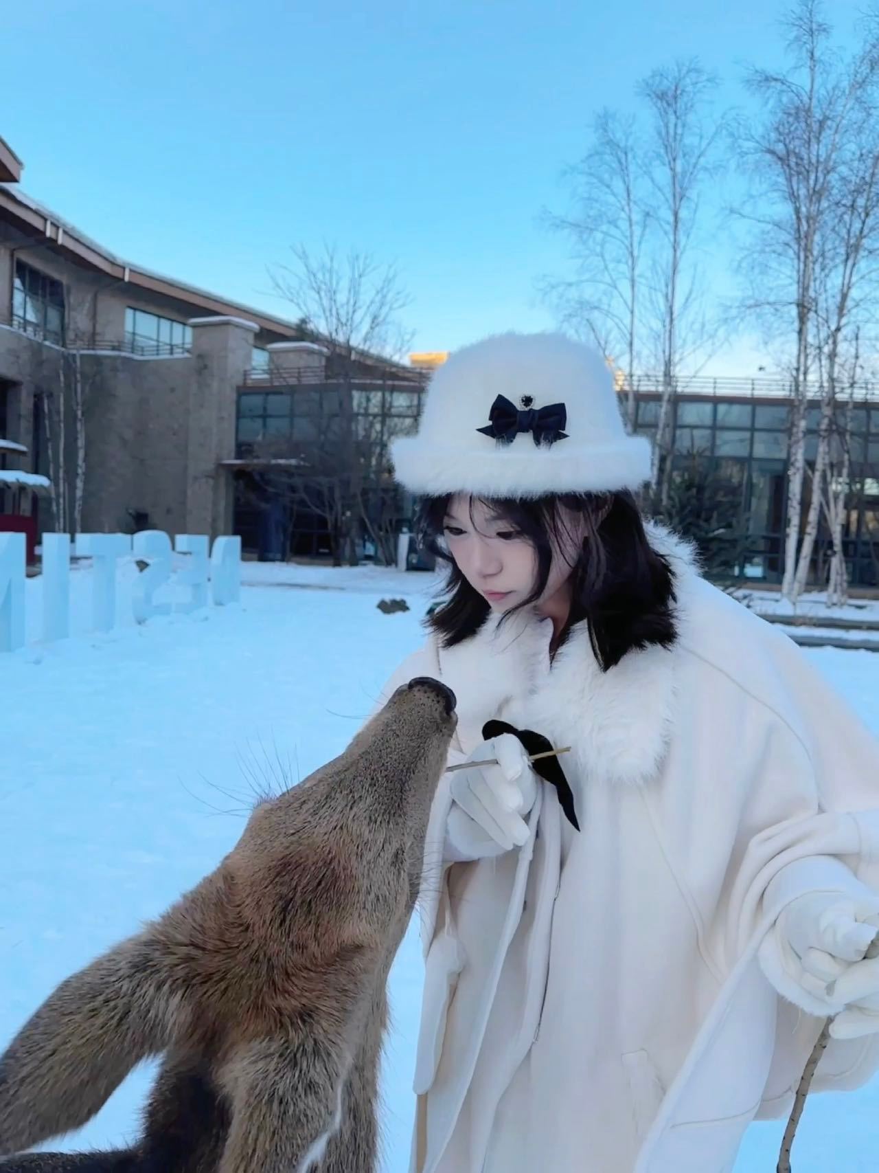 南方人终于冲向北方看雪啦!❄️住进暖乎乎的小木屋 窗外白雪皑皑裹着白色毛绒斗篷和驯鹿贴贴合照好像变身成雪地里的糯米团子踩深一脚浅一脚的雪心瞬间化在童话里🦌生活笑料撞满怀我的幽默灵感片场