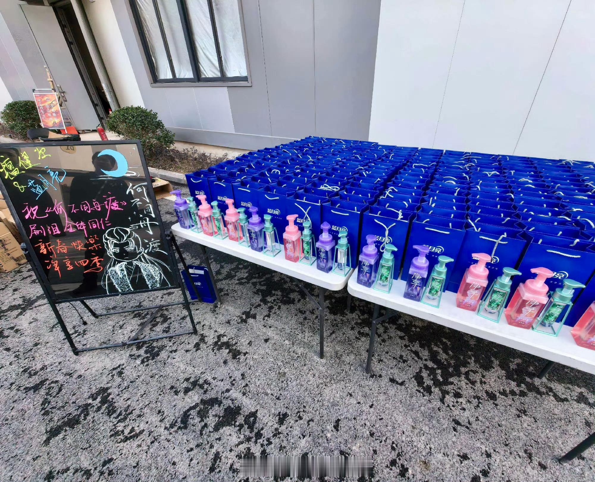 蓝月亮 探班品牌全球代言人檀健次《何不同舟渡》剧组,给剧组全体送上暖心新春礼物。
