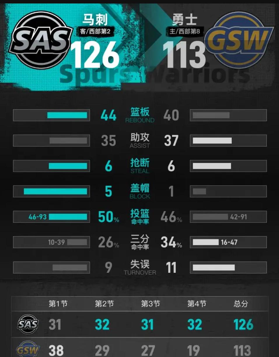 勇士又输了?主场输马刺13分那种。 我关掉直播,盯着黑屏发愣。马刺啊,西部倒数的马刺,末节轰我们32-19。说好的季后赛经验碾压,结果被一群新兵蛋子按在地上摩擦——这剧本但凡赛前有人敢写,评论区能把他喷到退网。 数据会骗人。勇士7人得分上双,乍一看团队篮球美如画,细品全是零敲碎打。马刺压根不跟你玩花的,就俩人抡:福克斯27分8助攻,跟文班打个挡拆跟遛弯似的,中投稳得让你想摔手机;文班亚马26分9篮板,护筐完事还能飘外面扔三分。勇士内线被捅成筛子,格林17+12+8,数据刷得挺全乎,关键回合文班一个转身劈扣,他站原地目送——这画面我看一次心梗一次。 勇士现在像台老爷车,外表擦得锃亮,一脚油门下去浑身哆嗦。三分33中10,空位哐哐打铁;防守换永远慢半拍,补永远漏干净。末节想上强度翻盘,自己先掉电:穆迪突破被帽,波杰姆传球直送对手怀里,最后5分钟全队只得8分。反观马刺替补席,哈珀8助攻把球喂到每个人嘴边,42分轻松落袋——咱家替补呢?佩顿偷了两个快攻,其他时候都在当背景板。 说难听点,勇士这哪是没匹配上能量,是油箱早见底了。 但气归气,日子还得过。梅尔顿拼到摔出场外,穆迪防得鞋都快掉了,波杰姆挨完骂下一回合还敢冲——这群年轻人没怂。科尔该醒醒了,轮换再像开盲盒,附加赛门票真得看别人脸色。马刺这波6连胜不是撞大运,文班关键时刻手不软,福克斯打硬仗像个老炮,青春刮得又狠又稳。 输一场球而已,不是输掉整个赛季。至少今晚关灯躺下时,我还信库里回来能把老爷车重新踩上80迈——毕竟咱啥大风大浪没见过,对吧?文班亚马26+9福克斯27+8 马刺擒勇士6连胜
