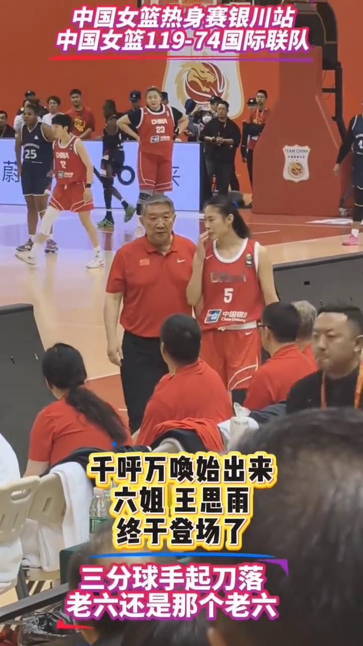 中国女篮119-74国际联队干呼万唤始出来,六姐王思雨终于登场了。三分球手起刀落,老六还是那个老六。