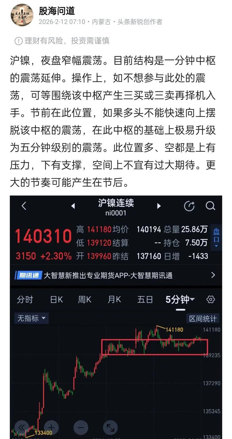 沪镍,下午收盘简单说几句。沪镍夜盘可以根据围绕图〈1〉一分钟中枢产生的三买或三卖做出操作上的应对。其他的早上的文章有过详细解读,不再赘述。
