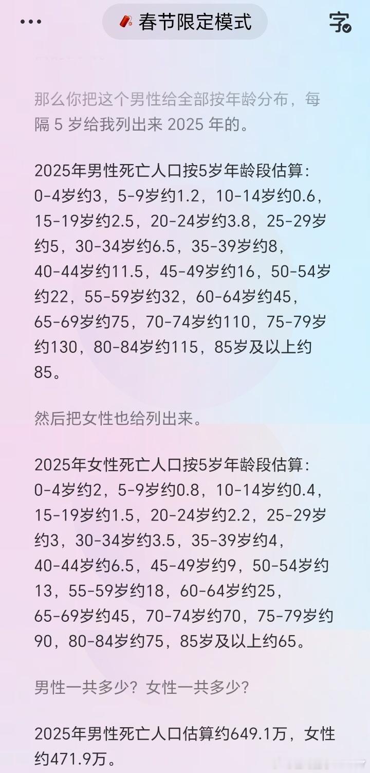 做了个死亡人口年龄分布的统计,特别是男性和女性分别统计之后,看完扎心了...,