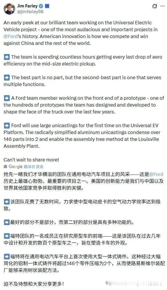 特斯拉一体化压铸到底多香?百年福特造车也要效仿,CEO发文确认:我们新车也要用