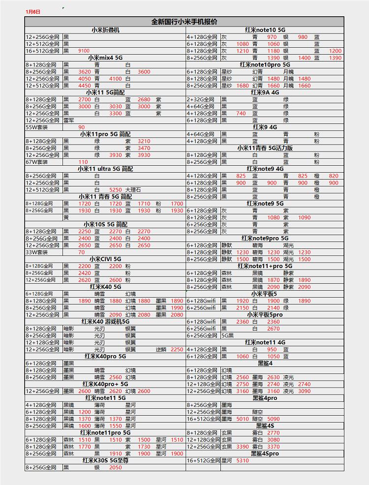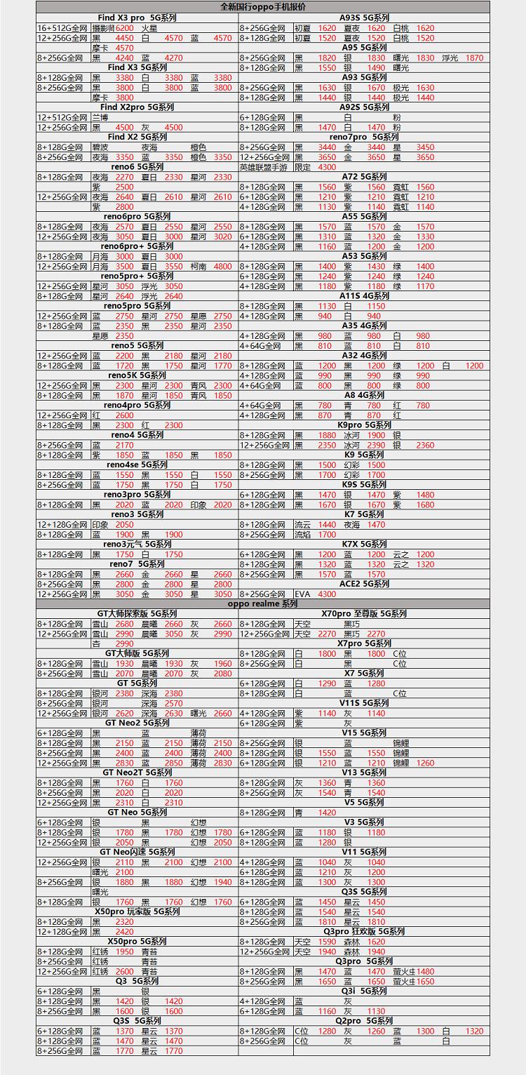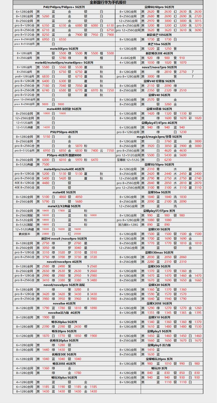 全新华为、OPPO、VIVO、小米手机渠道批发报价单,此报价单仅供参考。 蓝绿厂、华为部分产品受到地区限制,省内流通的可能会比全国流通的要低一些,这个是没有办法的,如果有懂行的小伙伴应该知道。 iPhone的报价单如果有需要的话可以晚点再发,如果看的小伙伴多的话,我可以坚持每天都发一发,给大家做一个参考。