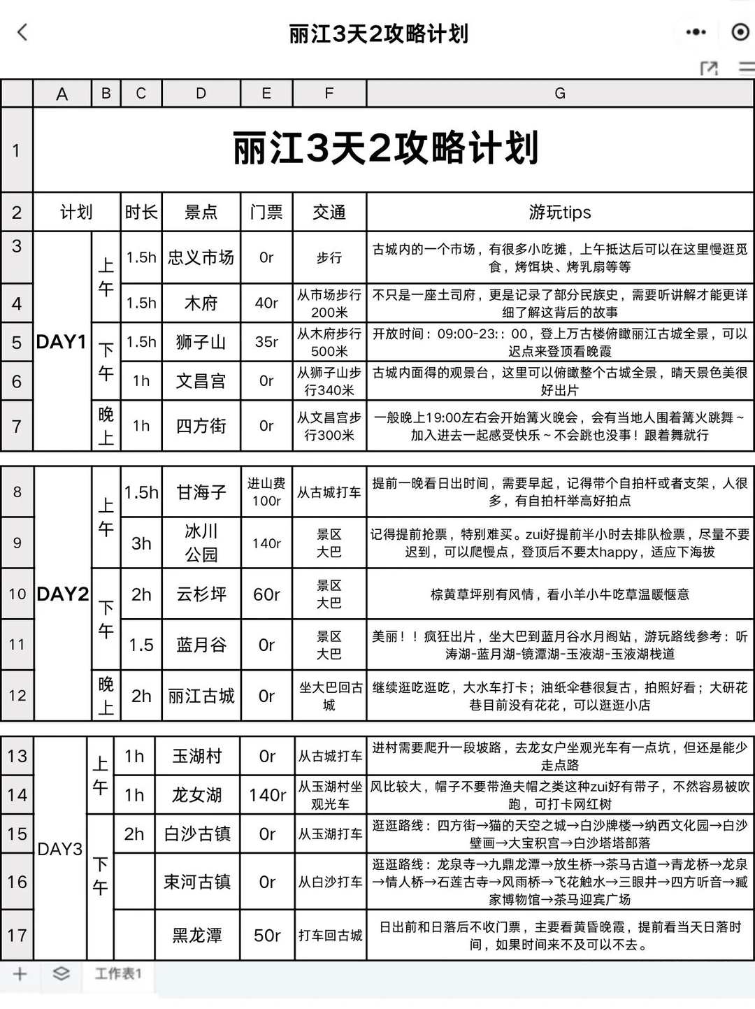 本J人耗时24h做的丽江攻略已经next level了