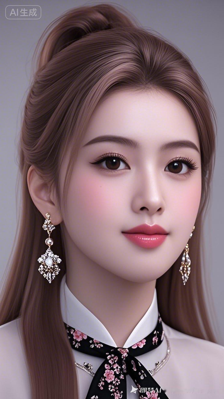 温柔甜美的AI生成少女,精致妆容与优雅饰品相得益彰,尽显东方古典韵味。