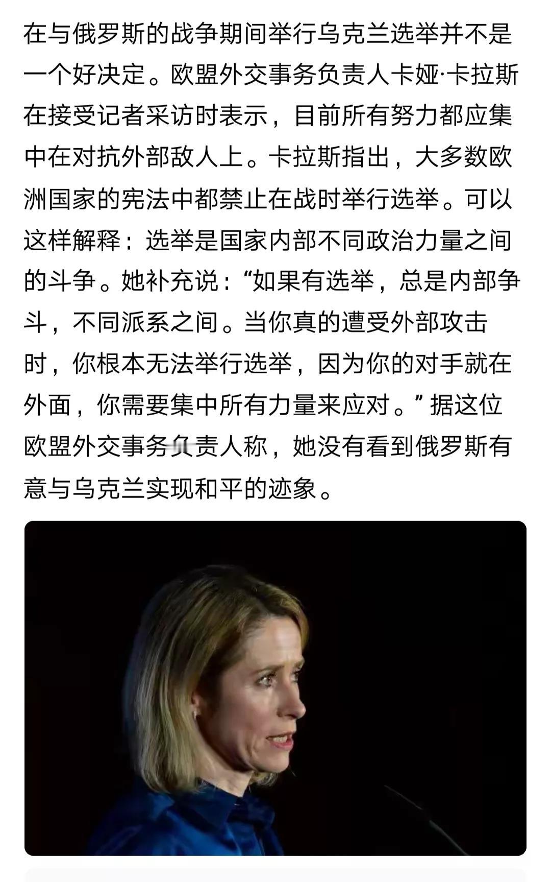 欧盟高级官员卡娅-卡拉斯认为,战时状态不宜进行选举,大家认同吗?