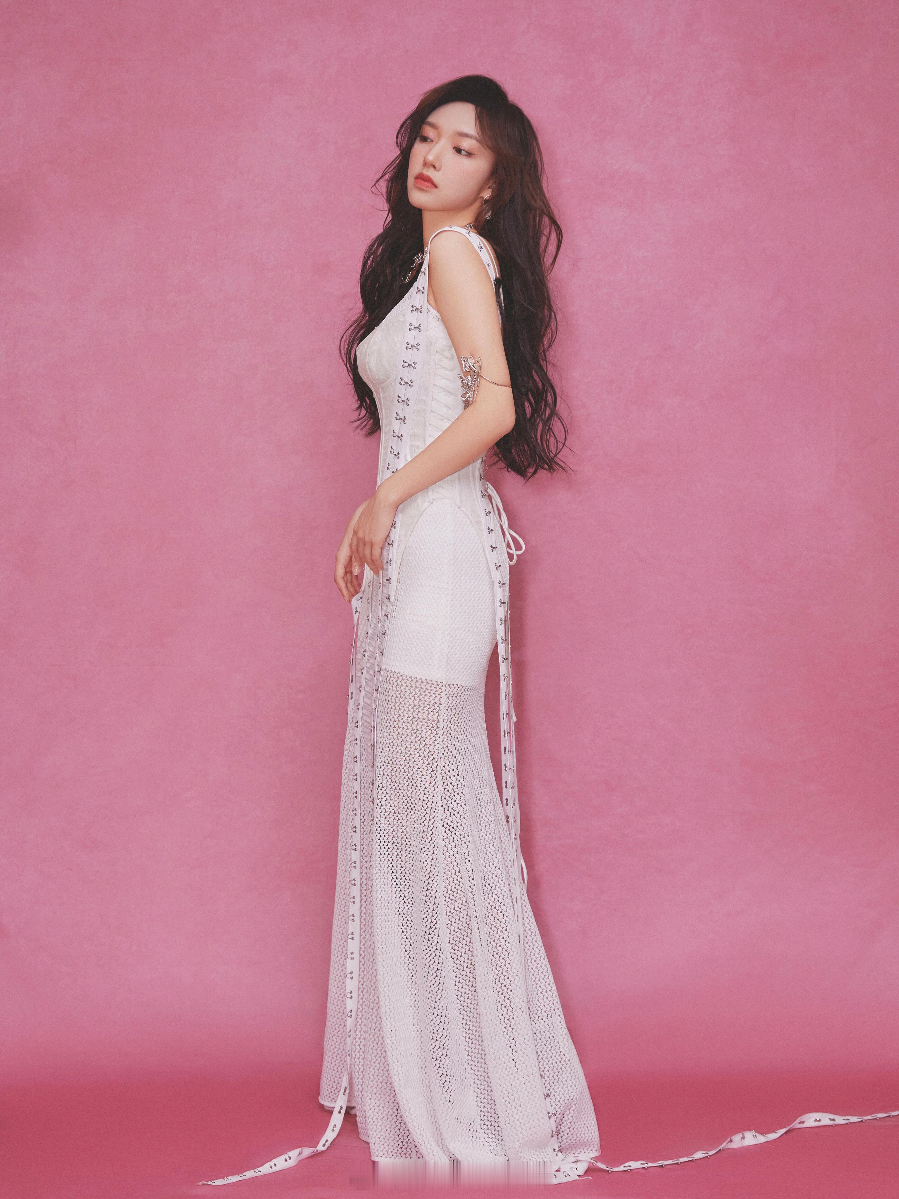 明艳红唇+利落卷发,酒红衬衫搭皮裙,娜扎的港风造型又美又飒,气场直接拉满!
