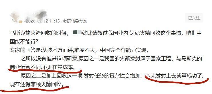 为什么要把这货的名字抹掉,因为看着恶心。 为什么要说他,也是因为太恶心。 本来我们看着长10和梦舟合体试验成功,登月工程又顺利进行一步,大家都挺开心的,这人非要在我们面前拉一坨。 阴阳我们火箭发射属于国家工程,所以不在意成本。 这人果然还活在那个时代。 他不知道中国的火箭商业发射已经好多年了,不考虑成本? 什么人才能这样无知。 连马斯克怎么挣钱都不知道的人,还在这里谈成本问题。 还说我们的专家说发射上去就算成功,现在还要回收,多一件事。 感觉我们航天事业的工作者很害怕多一件事就要承担更多的风险一样。 把别人都当作胆小鬼,没担当的货,以为是和他自己一样的货色。 中国以前不做火箭回收,是因为研发成本不低,而且不一定划算。 这就和我们当初为什么选择飞船路线而不选择航天飞机路线一个道理。 重复使用不一定更省钱,有时候一次性可能成本更低。 况且,现在也有公司开始在做火箭回收技术了。 而且做这个也不全是为了成本的原因,更多的应该就是为了一种技术储备。 这人恐怕连技术储备是啥都不知道吧? 说实话,真的很难理解。 为什么这种人只要一看到我们有什么进步就非要给我上点眼药恶心一下我们,他内心才平衡呢? 他的内心要有多扭曲才会这样? 点右上角关注我,我们一起去看这个魔幻的世界