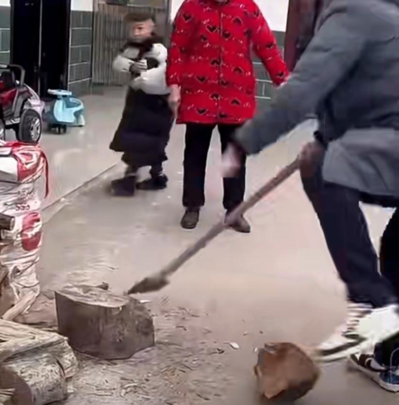 湖北男子想在丈母娘家表现一下,就主动去劈柴,结果柴没劈几下,自己却失误致小腿骨折