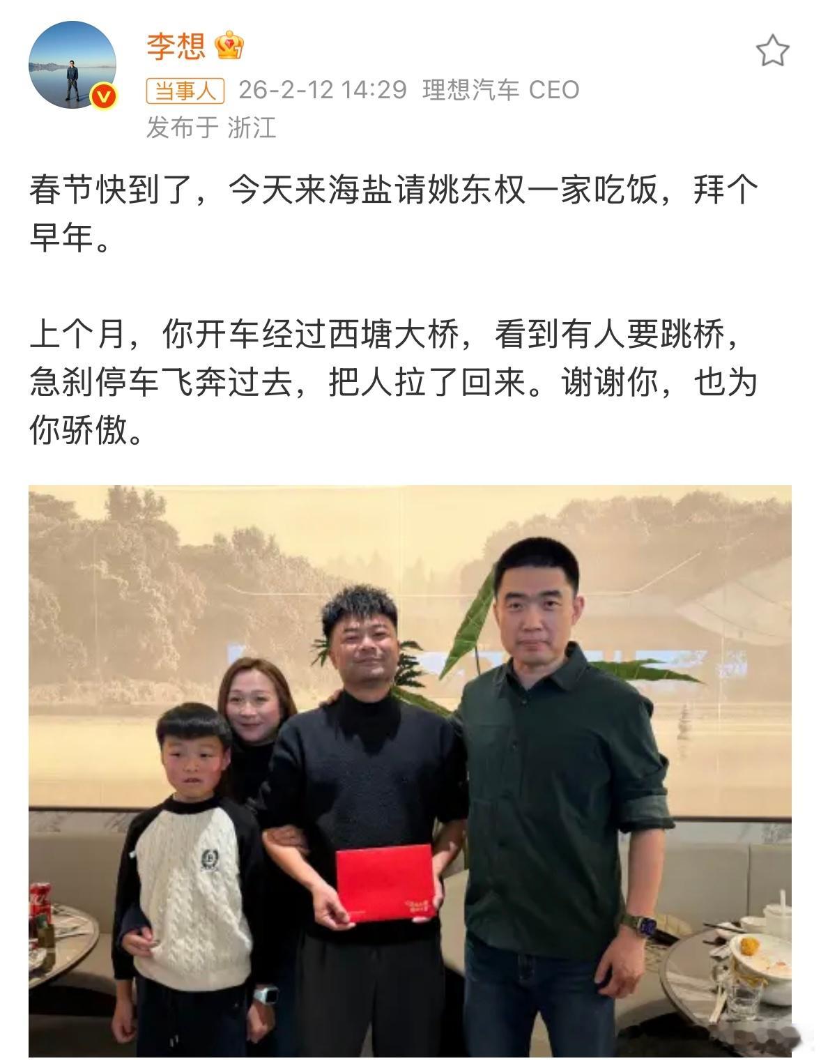 李想给那位见义勇为的理想车主送了辆理想。就喜欢这种故事。好看爱看、多多益善李想送救人车主任意在售车型