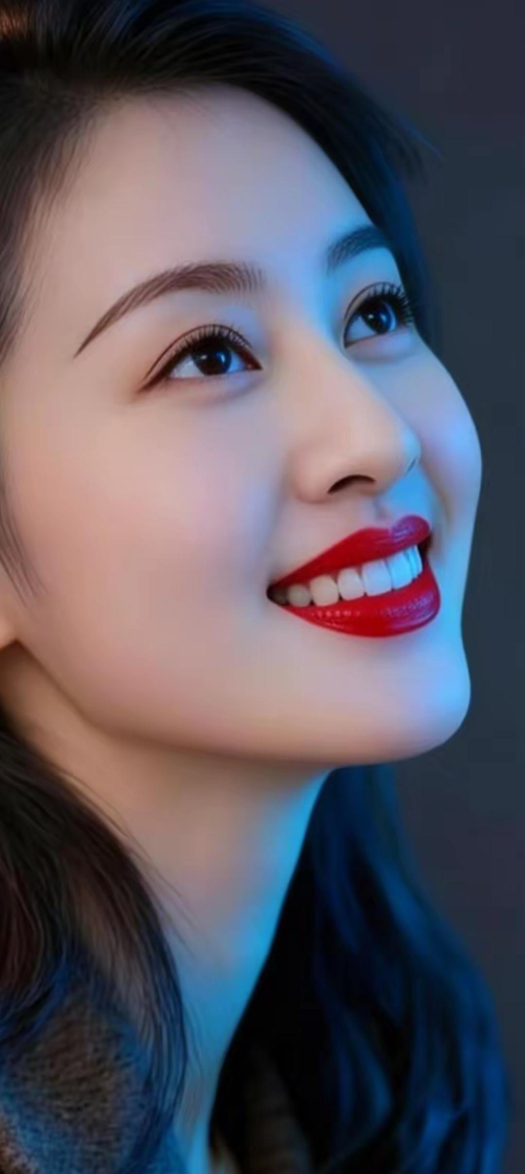 冬日暖阳下的温柔微笑,红唇与雪白肌肤的完美碰撞。