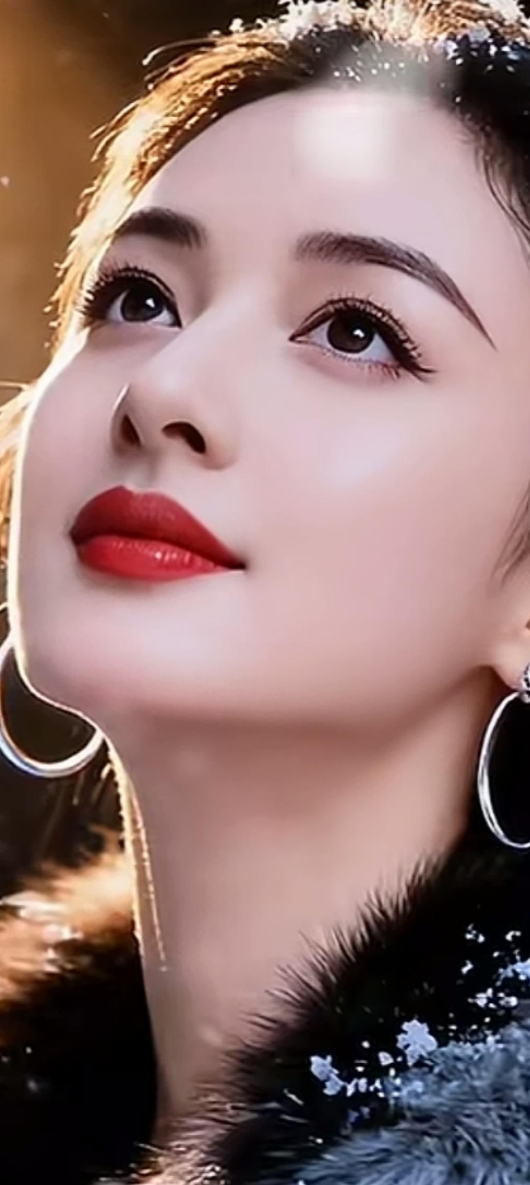 冬日暖阳下的红唇美人,闪耀的耳环和毛绒外套,尽显优雅与魅力。