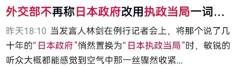 “日本政府”没了。2月9日,外交部换了说法:日本执政当局。这不是笔误。政府是承认,是共识,是对两国承诺的尊重。执政当局——不好意思,你代表不了日本人民,只能代表眼下掌权、踩线、破坏关系的那拨人。 精准点名。不误伤,只警告。 为什么改?高市早苗。涉台言论。一而再、再而三。中日四个政治文件写得明明白白:一个中国,不干涉内政。可这几年,总有人跟着美国喊“台湾有事”,把手往中国内政里伸。 客气过。交涉过。忍过。换来得寸进尺。那就换个叫法。意思很直白:你们这届掌权的,已经不配我们拿对政府的客气对待。不守承诺,就不给面子;敢挑衅,就直接点名。 高市必须撤回,这不是外交辞令,是最后通牒。台湾是中国的台湾,怎么解决是中国人自己的事。当年的侵略历史还没翻篇,今天又想玩火? 别把克制当软弱。改称呼不是结束,是开始。话说到这份上了——再执迷不悟,后面还有更硬的。 对此你怎么看?