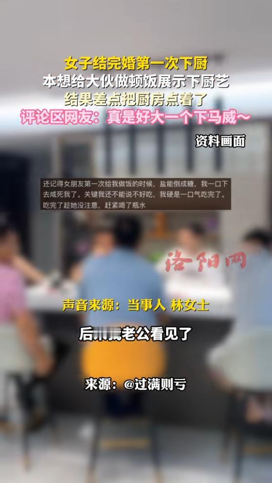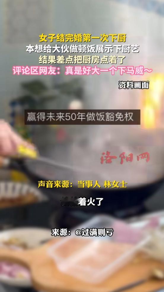 “笑不活了!”近日,湖南益阳,一女子想展示厨艺,便去厨房做起了结婚后第一顿饭,没想到烧油时没控制好火候,一下就着火了,当时女子不在厨房,还是老公看见了火光,要是再耽搁久一点,估计厨房都要被烧着了!网友:真是好大一个下马威! 视线并没有落在案板上堆叠的食材上,而是穿过客厅与厨房那道虚掩的门缝,死死钉在了透出的那一抹诡异红光上。 这不是春节残留的灯笼倒影,而是一种令人心悸的、跳动的橙红。就在2月10日,媒体曝出的这段发生在湖南益阳的画面,把原本该贴着“新婚燕尔”标签的午后,硬生生切换成了消防演习现场。 没有任何预警,空气里也没有饭菜的焦香,取而代之的是那种高分子材料即将碳化的刺鼻味道。 如果不是丈夫那一瞥,这顿饭的结局恐怕不是“糊了”,而是整个家都要变成废墟。 坐在沙发上的林女士,前一秒还在盘算着如何用这顿饭惊艳婆家,后一秒面对的却是正在失控的厨房。这本该是她在婆家的“首秀”。作为新过门的媳妇,她太需要一个舞台来确立自己“贤惠顾家”的人设了。 在此之前,她是十指不沾阳春水的掌上明珠,一日三餐全靠长辈投喂,但这并不妨碍她产生一种美好的错觉:做饭能有多难?这种对烹饪复杂度的轻视,直接导致了她在操作逻辑上的致命断裂。 她像启动一台全自动机器一样点燃了燃气灶,倒上油,然后做出了一个老厨师绝对不敢做的动作撤离核心控制区。脑海里的算盘打得很响:油热起来需要时间,这点空档刚好够去外屋收拾一下杂物。 这种“多线程操作”的自信,让她在转身关门的那一刻,把最危险的热源留给了无人监管的空气。物理学从不讲人情。封闭的锅体内,植物油的温度在持续加热下迅速突破烟点,进而逼近燃点。 起初只是几缕青烟,紧接着是令人窒息的浓烟,最后,“呼”的一声,明火在锅中腾空而起。整个过程发生在她离开后的那短短几分钟真空期里。厨房变成了无人驾驶的失控车辆,正全速冲向悬崖。 外屋的林女士对此一无所知,她还在专注于整理那些琐碎的物品,完全没意识到一墙之隔的地方,死神正在擦亮镰刀。打破这层恐怖宁静的,是丈夫的生理性警觉。当那束不正常的火光映入眼帘时,丈夫心里猛地“咯噔”一下。这种反应甚至快过了大脑的逻辑判断,是人类面对火灾本能的恐惧。 他几乎是从座位上弹射出去的,三步并作两步冲向厨房。推开门的那一刻,感官冲击是毁灭性的。 浓烟像一堵墙一样扑面而来,呛得人几乎睁不开眼,而灶台上的油锅此刻正吐着火舌,火苗贪婪地舔舐着上方的空间。 没有时间思考,丈夫屏住呼吸,冲进烟雾中关掉了燃气阀门,并迅速切断了这场正在发酵的灾难。 这一连串动作,是这起事件中唯一的熔断机制。要是再晚哪怕半分钟,火势一旦引燃周边的橱柜或油垢,后果就不再是“惊吓”,而是真金白银的损失,甚至是人身伤亡。 直到危机解除,林女士才慌乱地跑进来。看着满屋狼藉和那口还在冒着余烟的黑锅,她的脸色瞬间变得煞白。 那种后怕是真实的。前一刻还想着用美味征服家人的胃,这一刻却差点烧了全家人的房。这种巨大的心理落差,让她站在原地,久久回不过神来。但这起事故在网络空间里,却被解构出了另一种荒诞的喜剧色彩。 围观的网友们并没有过多指责她的疏忽,反而敏锐地嗅出了一丝“职场生存智慧”的味道。有人调侃,这哪里是做饭失败,分明是一记精准的“下马威”。用一次极具视觉冲击力的“炸厨房”表演,彻底向婆家展示了自己在烹饪上的毁灭性天赋,从而一劳永逸地拿到了“终身免做饭金牌”。 虽然这只是网友的戏谑,但也从侧面折射出新手下厨时那种“无知者无畏”的普遍困境。对于林女士来说,这场代价高昂的“首秀”,虽然没能端出可口的饭菜,却以一种极端的方式给所有人上了一课。 厨房从来不是温室,它是充满明火、高温和利刃的高风险作业区。哪怕是这一分钟的侥幸,在热力学定律面前,都可能演变成无法挽回的悲剧。好在,除了那口锅和受惊的神经,一切都还来得及补救。 这或许是最好的结局:房子还在,人也没事,而关于“谁来做饭”这个问题,在这个家庭里,恐怕很长一段时间内都不会再有争议了。 信息来源:《女子结完婚第一次下厨,本想给大伙做顿饭展示下厨艺,结果差点把厨房点着了,评论区网友:真是好大一个下马威~》洛阳网