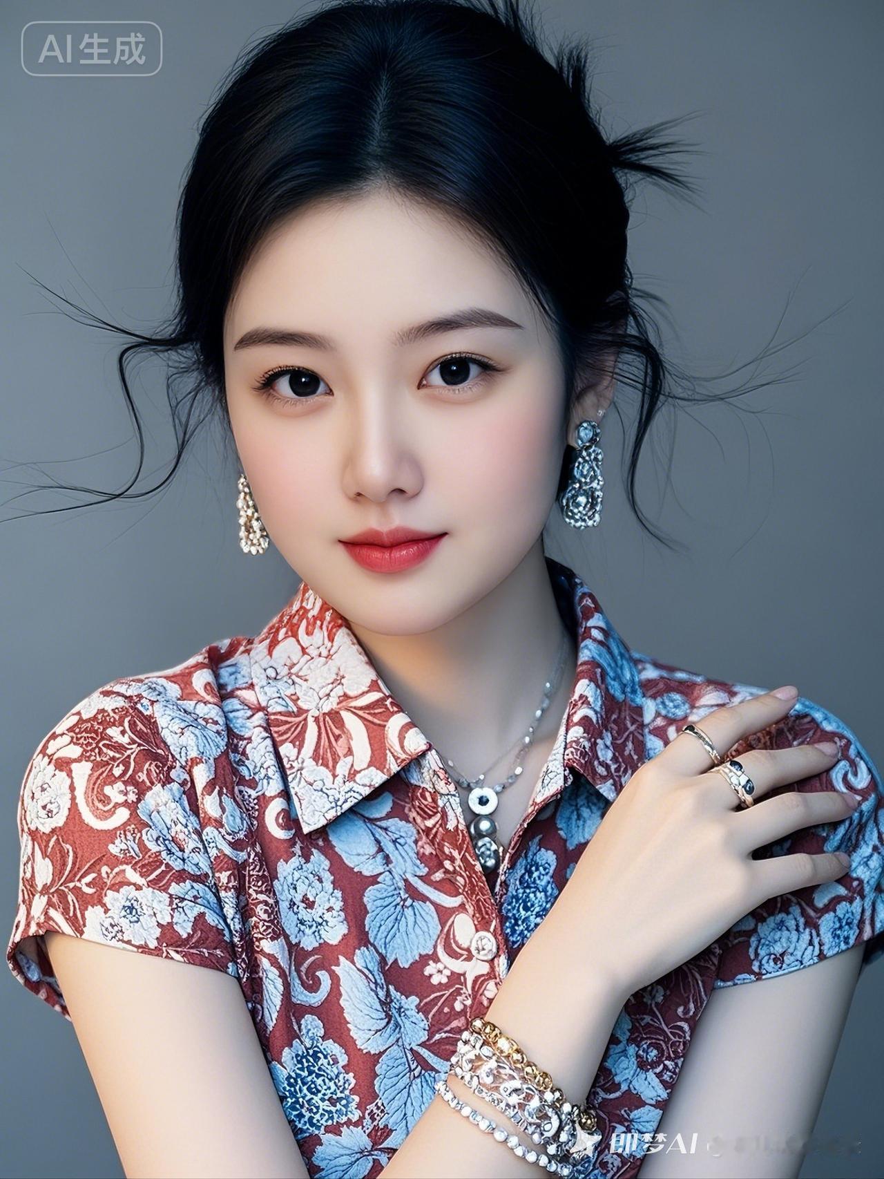 温柔甜美的AI生成少女,精致妆容与优雅饰品相得益彰,尽显东方古典韵味。