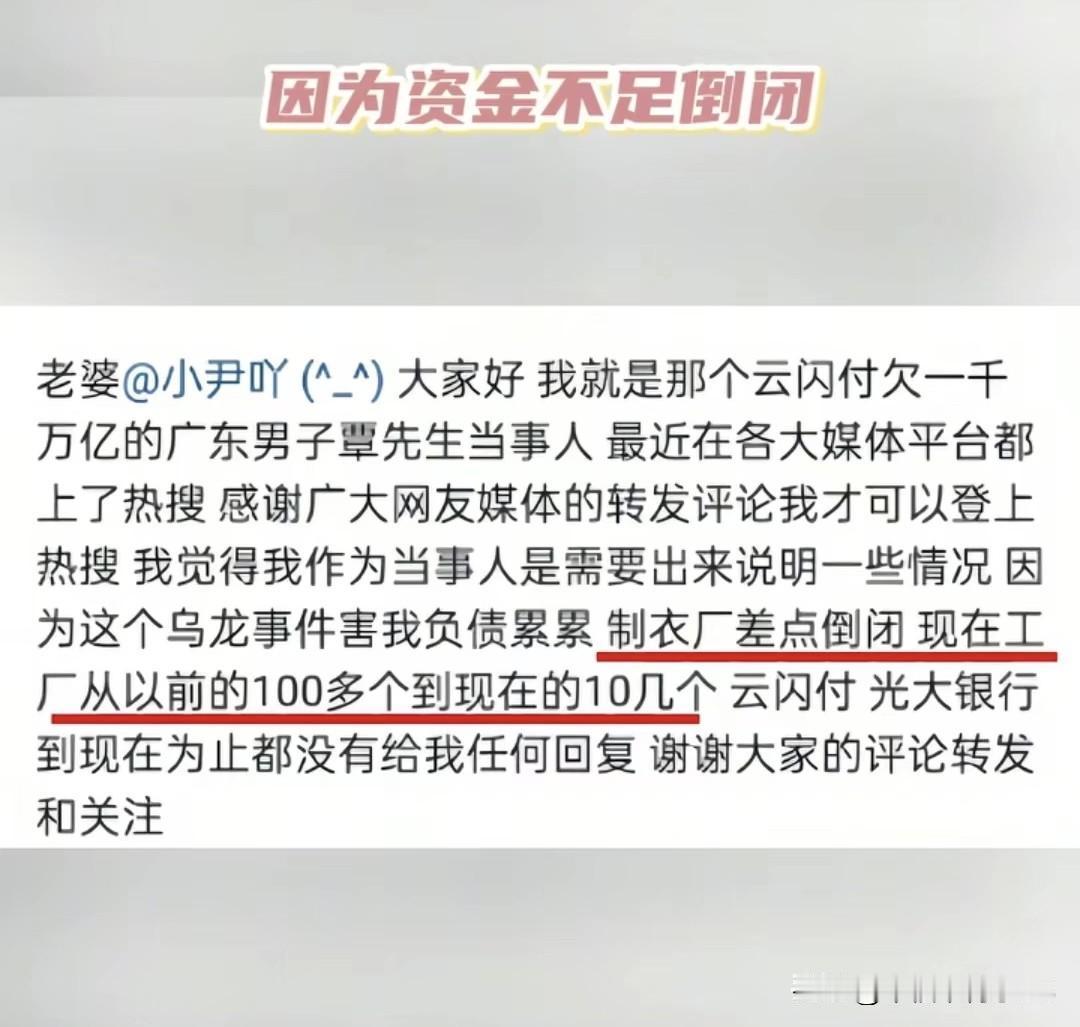广东有个覃先生,一觉醒来发现自己欠银行一千万亿!这数字多离谱呢?咱国家去年GDP才140万亿,全球2025年GDP预测也就八百多万亿,这1000万亿都能买下整个地球了! 覃先生赶紧找银行,银行说“是软件显示错了”;又找平台客服,客服说“数据是银行给的”。就这么你踢给我、我踢给你,从2022年踢到现在,愣是没个解决办法。 最气人的是,银行之前还说给三万多利息补偿。这三万和一千万亿比,就跟某游戏买豪车皮肤送个五元跑车优惠券一样,纯属搞笑! 现在这离谱欠款把覃先生生活都毁了,制衣厂资金链断了没法开工,只能卖车卖房硬撑。要是他账户多了一千万亿,估计秒被盯上;欠了这么多,却跟皮球似的被踢来踢去,这真是倒了八辈子霉的无妄之灾!