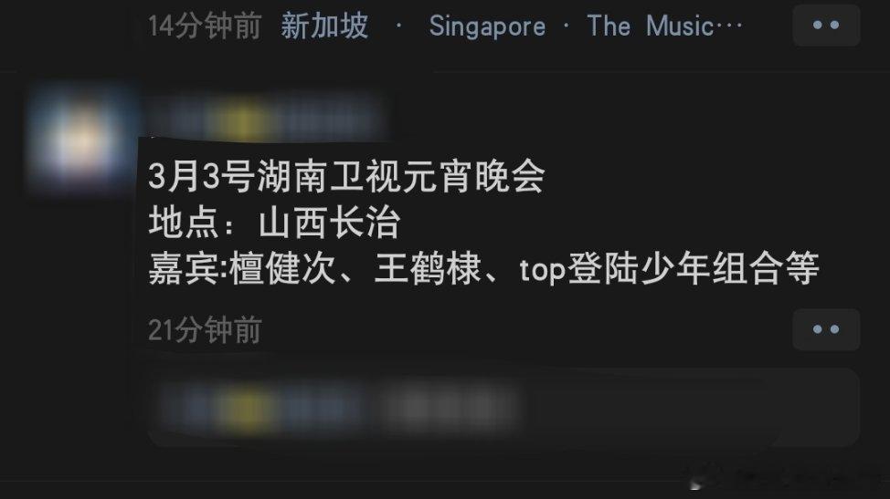 元宵晚会檀健次王鹤棣top会来山西长治?还是湖南卫视的?