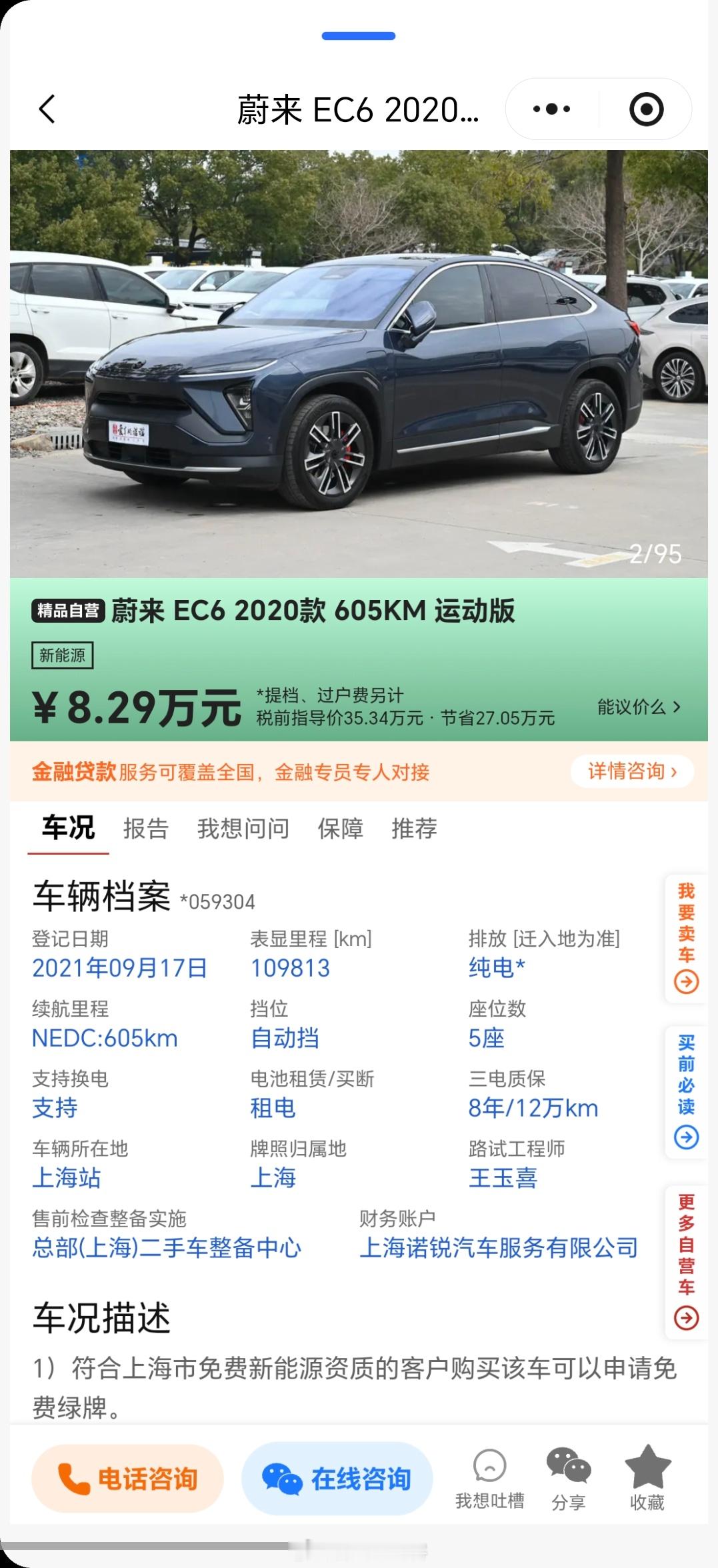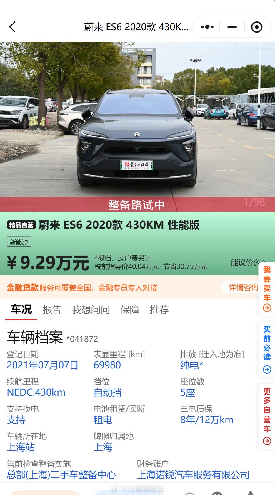 二手蔚来的价都跌破10万什么时候租电版跌到5、6万,那真的太香了蔚来蔚来es6