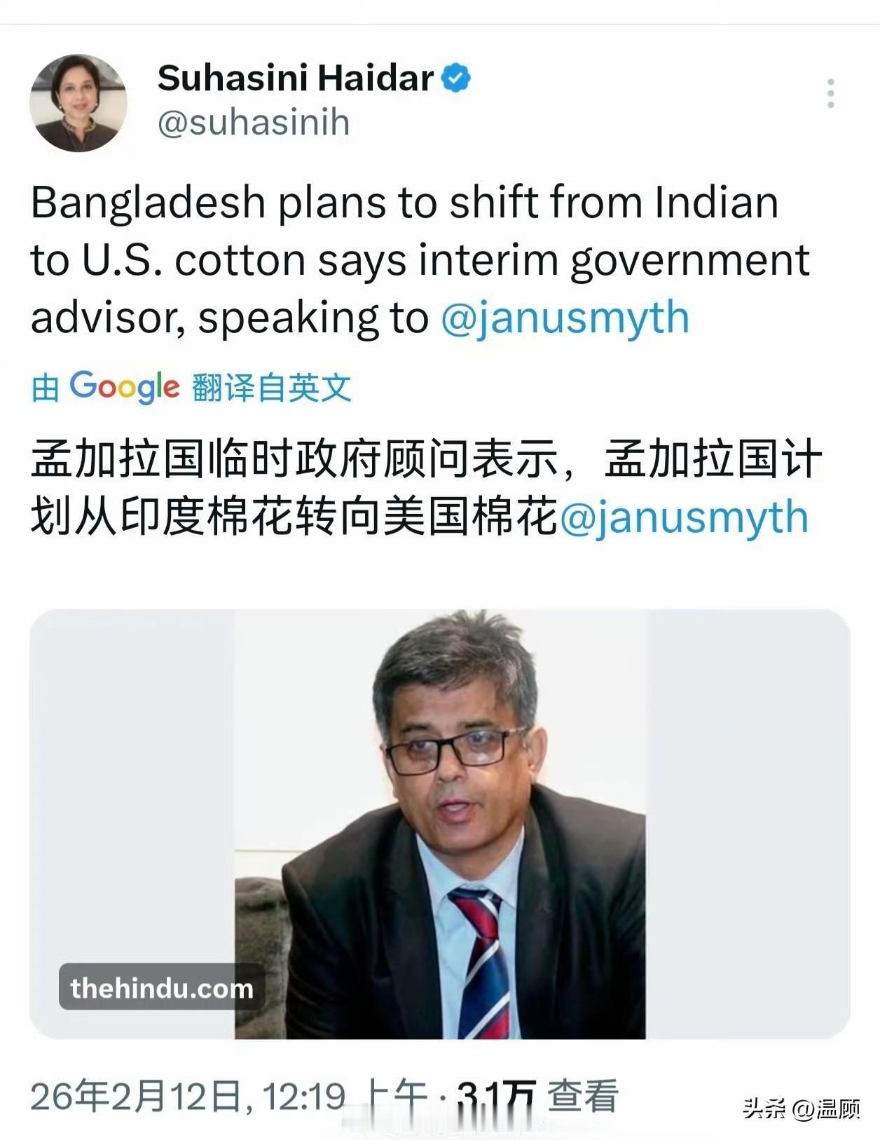 美国一招锁死印度,莫迪被精准算计…孟加拉国作为全球第一大棉花进口国,年进口量高达805–828万包,印度一直是其核心供应国之一。如今风向突变,孟加拉国正计划从印度转向美国采购棉花,美国更是直接给予孟加拉国纺织品零关税待遇。 这对印度堪称双重打击:一方面,印度将失去孟加拉这个棉花出口大买家,份额大概率被美国抢占;另一方面,享受零关税的孟加拉纺织品,将在美国市场对印度形成碾压式竞争,印度纺织出口优势直接崩塌。 此前莫迪还在为美印贸易协定沾沾自喜,没想到美国转头就拉拢孟加拉,一套组合拳精准打在印度软肋上。看似经贸合作,实则是地缘布局,印度这波,妥妥成了被算计的一方。