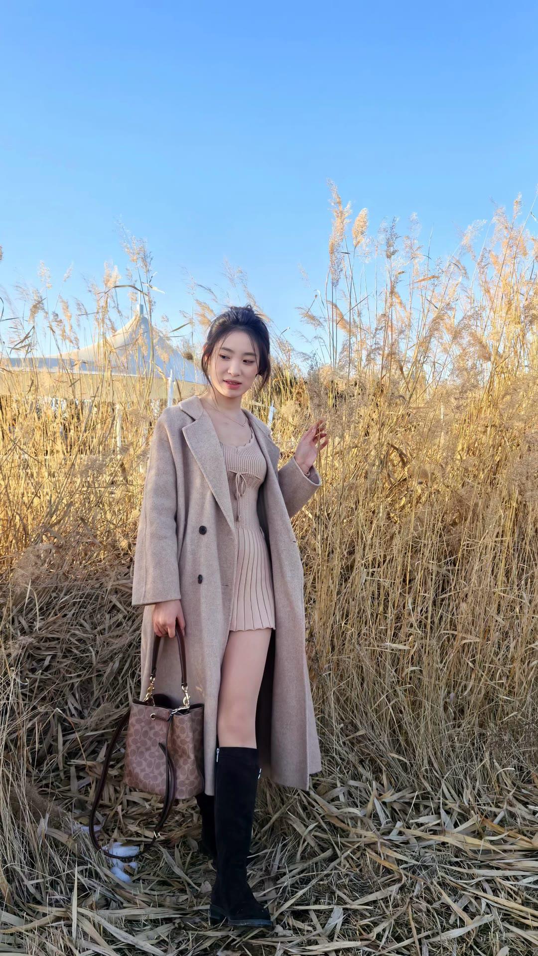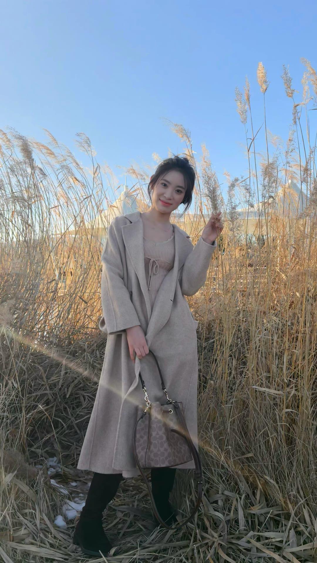 今日穿搭温柔冬日甜妹风,整体以米白、浅灰、奶咖为主,低饱和配色干净又显气质: