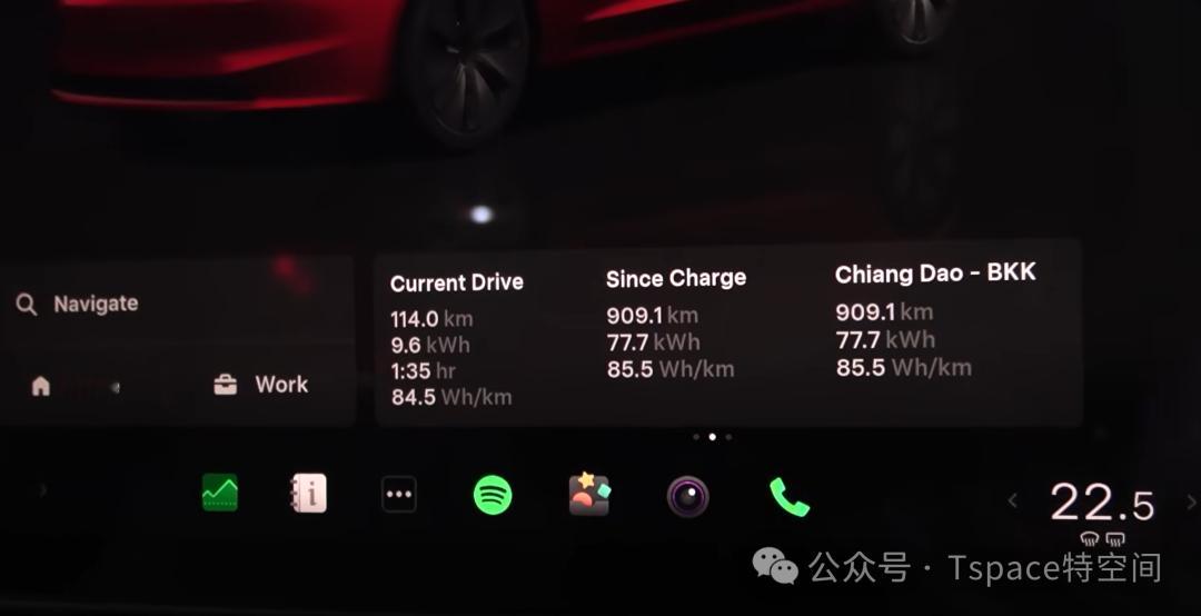 同时,适宜的测试环境也提供了有利条件:气温维持在27~29℃,使电池无需额外耗能来维持温度;加之选择周日出行,道路车流稀少,避免了频繁加减速,从而实现了全程高效稳定的行驶状态。