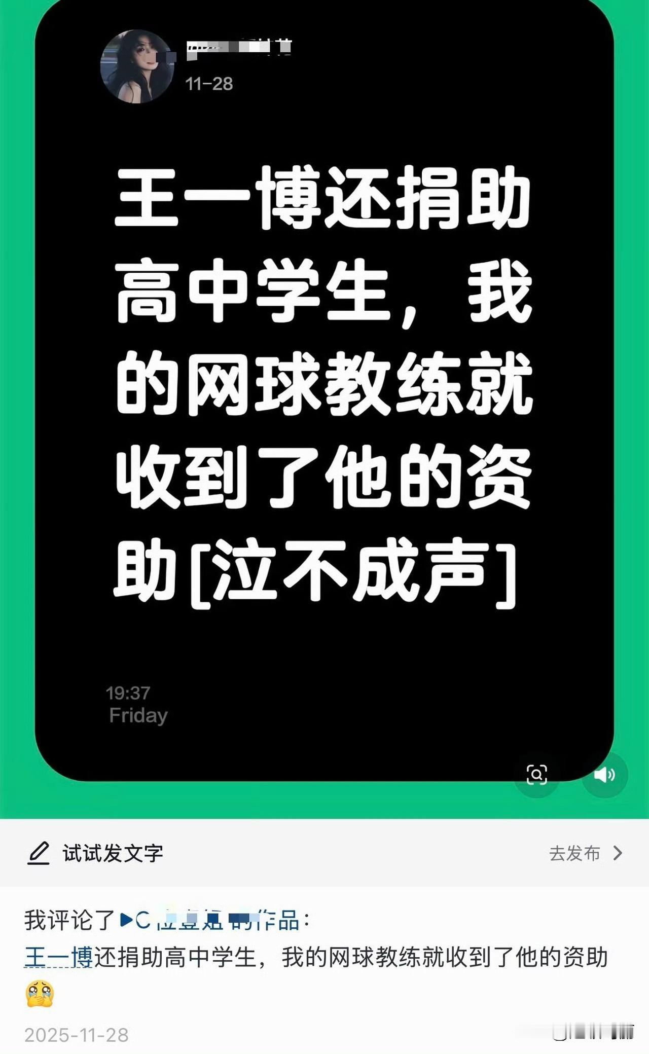 刷到了河南ip的姐妹说王一博 资助了一些高中同学,“他不爱说,我要说出来”[泣不成声]