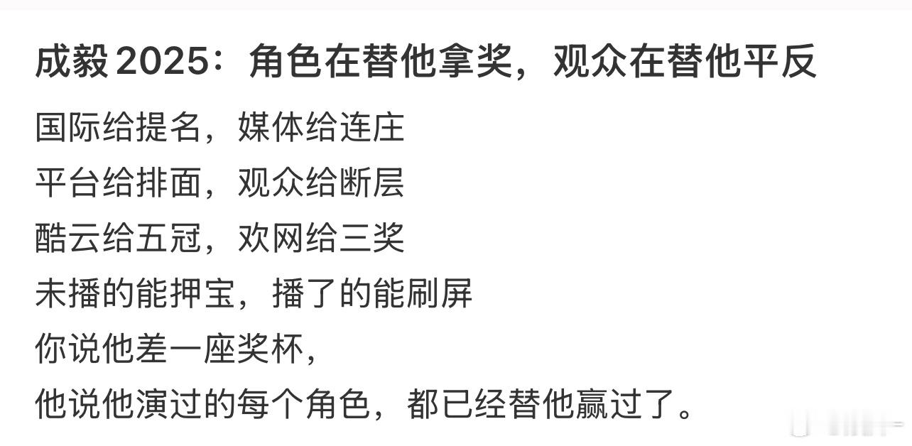 我现在深刻的理解成毅的粉丝确是不会吹,好多奖我都是第一次知道,别人报个名都能吹到热搜第一